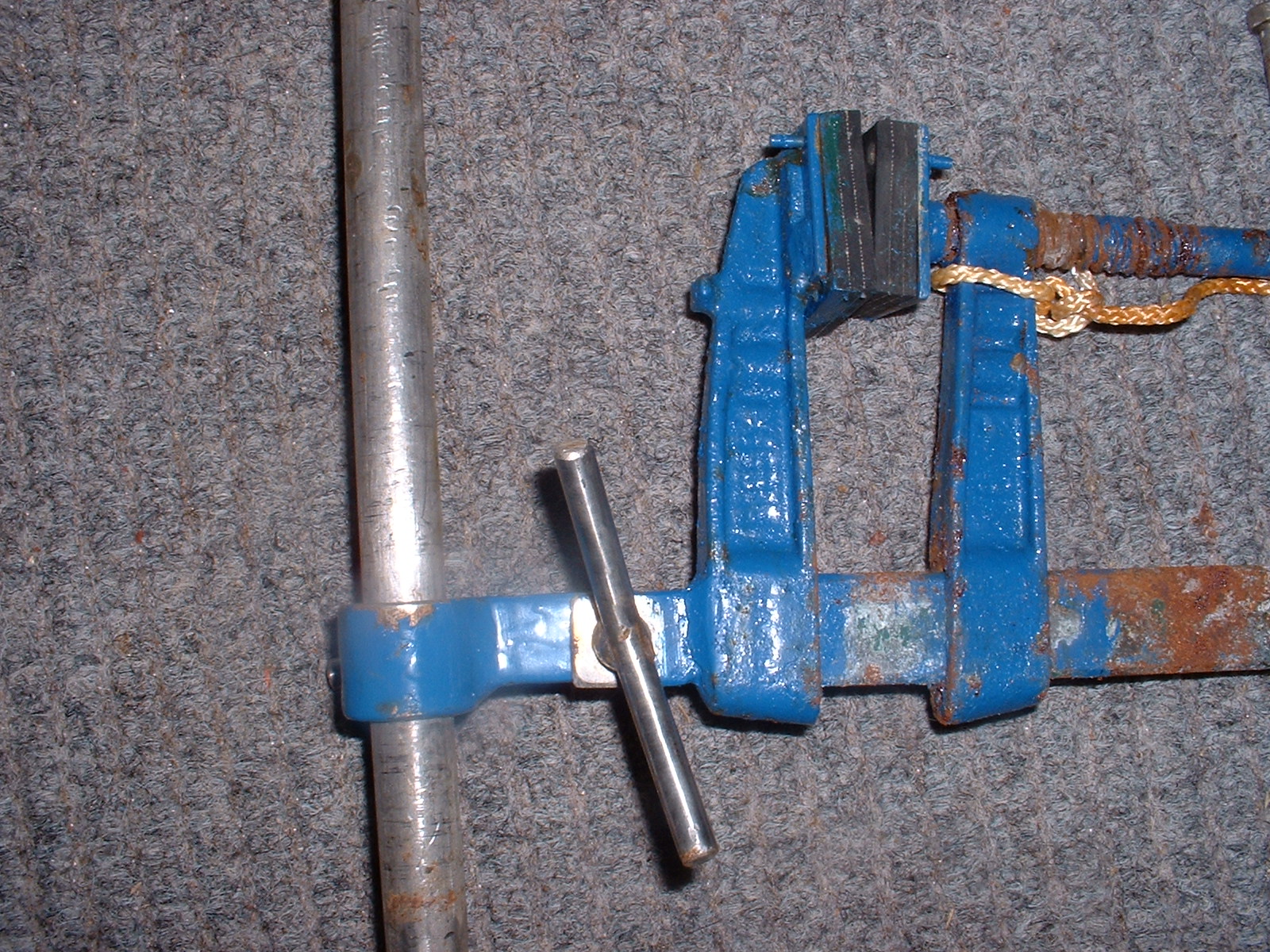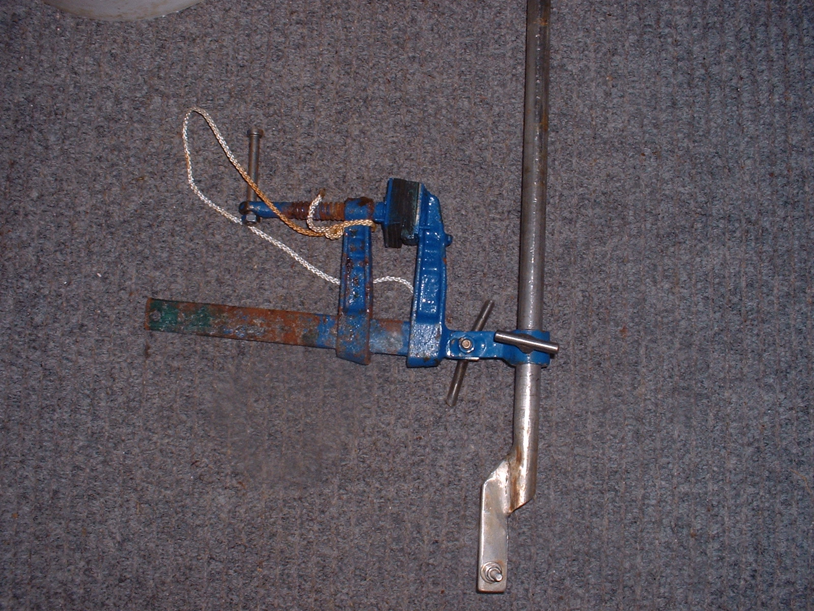 Uih, uih ,uih das ich mal Mac Gyver `nen Tip geben kann hätte ich auch nicht gedacht.:biglaugh::biglaugh:.Noch dazu erwischtst du mich als Lottersack ,irgendwie hab ich wohl vergessen die Schraubzwinge zu pflegen .Ich hoffe ich kann dir helfen mit diesen Bildern .Von einem pfiffigen Schlosser ist das Ding in nicht mal einer Stunde zu basteln.Wie gesagt alles aus Edelstahl ausser die Schraubzwinge.