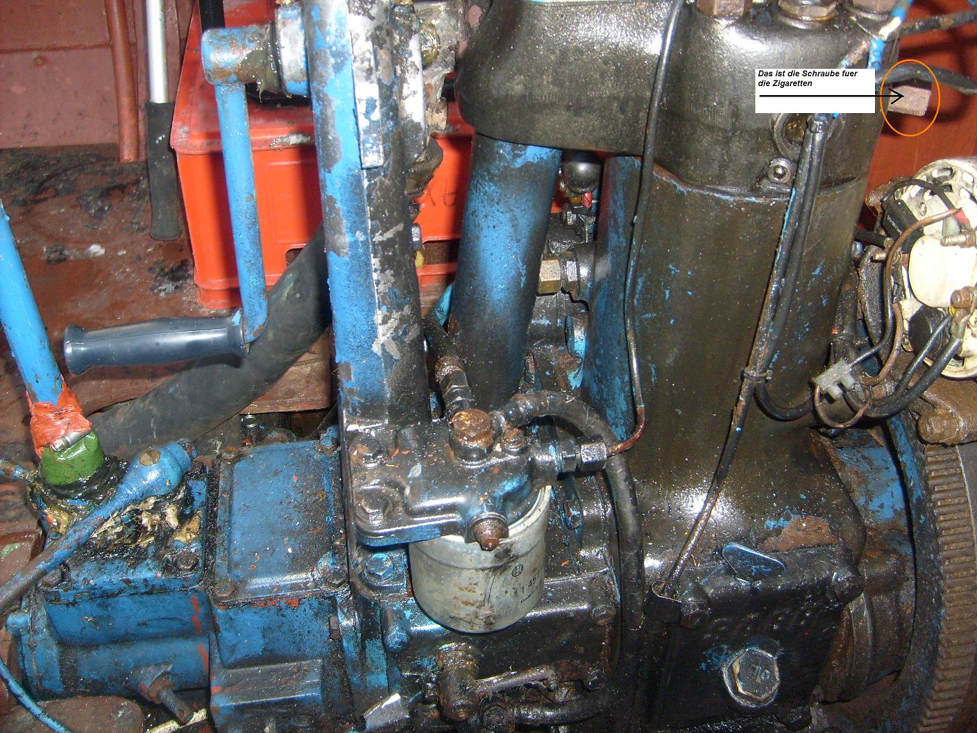 auf deinem vorne am motor die schraube - da gehoert die zigarette rein.