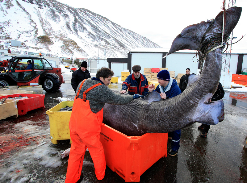 Die Fischer haben den Hai zerteilt - er kommt in den Handel, u.a. als dortiges Nationalgericht Gammelhai - gibts in jedem Supermarkt und etlichen Restaurants.