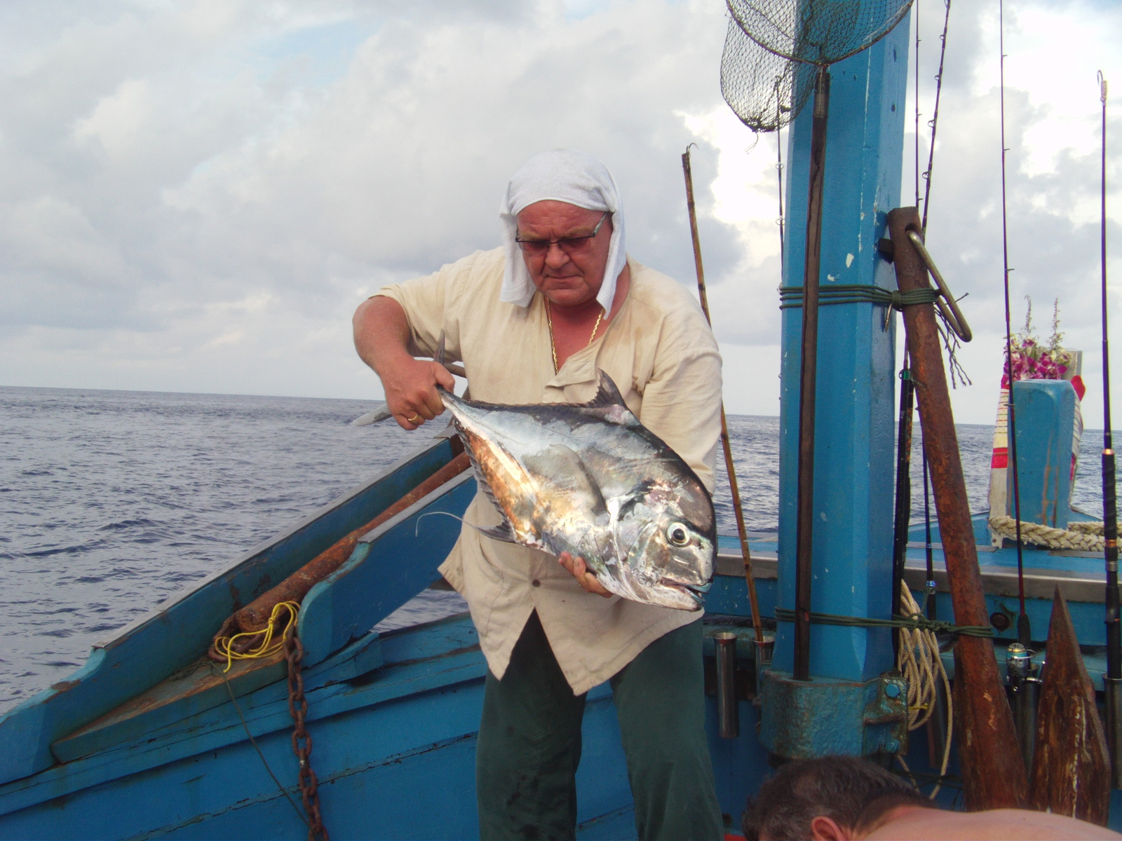 Brachte die eine Stelle nichts oder wenig, so wurde verholt. Es wurde nur vom verankerten Boot bis zu Tiefen von ca. 150 m geangelt. Die Strömungsverhältnisse waren teilweise recht schwierig, so dass ordentlich Blei ran musste. Teilweise wurde dann das Angeln auch mal eingestellt, weil es wenig Spaß macht, 500 g Blei und 400 m Schnur einzuholen. Geangelt werden konnte Tag und Nacht. Irgendwann musste natürlich auch mal gepennt werden. Wer nicht schlafen konnte, der fischt nachts auf kleine Tintenfische, die dann lebend gehältert wurden und tagsüber zum Einsatz kamen.