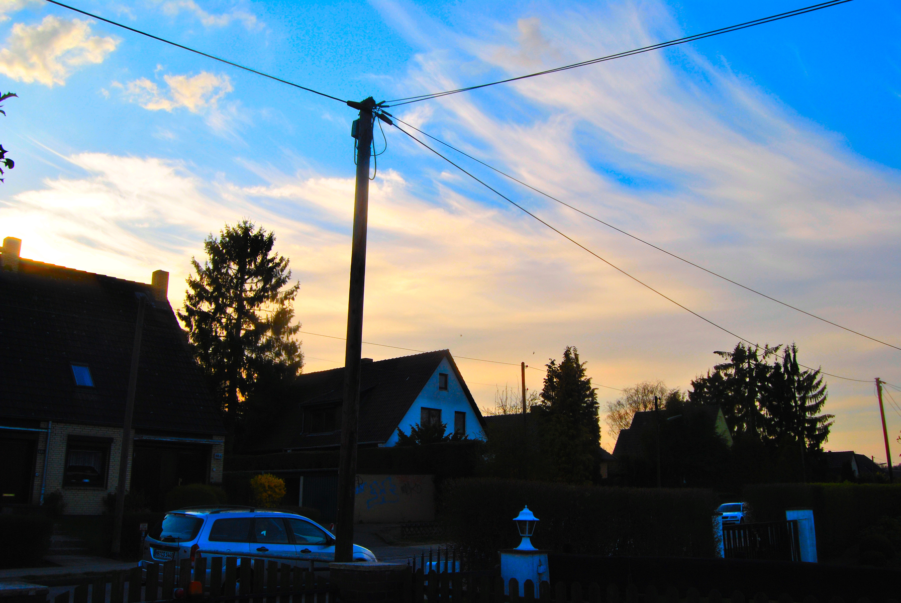 Die Aschewolke kommt jetzt auf Hamburg zu. Im Norden zieht ein leicht gelbes Schleierteil auf.