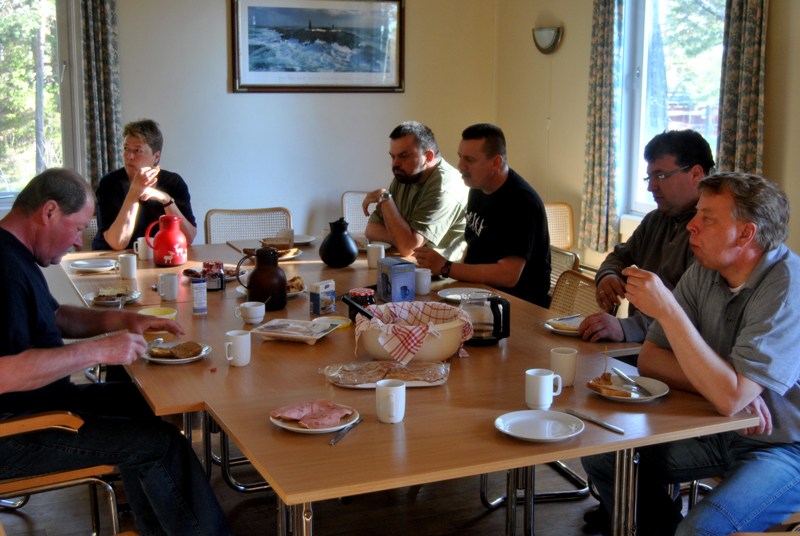 In Hirtshals gab es beim Eichecken dann noch ein Problem, weil 2 Leute nicht dabei waren, die angemeldet waren, dann aber absagten. Dafür ist einer dazu gekommen. Also waren wir 12 Personen und um Buchungskosten zu sparen, musste ich auf Anhieb sagen, wer die fehlende Person war. Tolle Wurst, wenn man nur die Nicknamen drauf hat. Ich entschied mich für Uwe, was sich später als Fehler herausstellte, denn der Bruder von Lucky hätte es sein müssen, weil er zur Gruppe gehört hätte, die anschließend in Norwegen bleiben. Somit war für die Rückfahrt eine Person zuwenig. Beim Schalter von Color Line stellte sich das nämlich heraus, weil wir dort für die Rückfahrt für 6 Personen das Buffet buchen wollten. Aber auch das bekamen wir gebacken, ohne dass groß umgebucht werden musste.