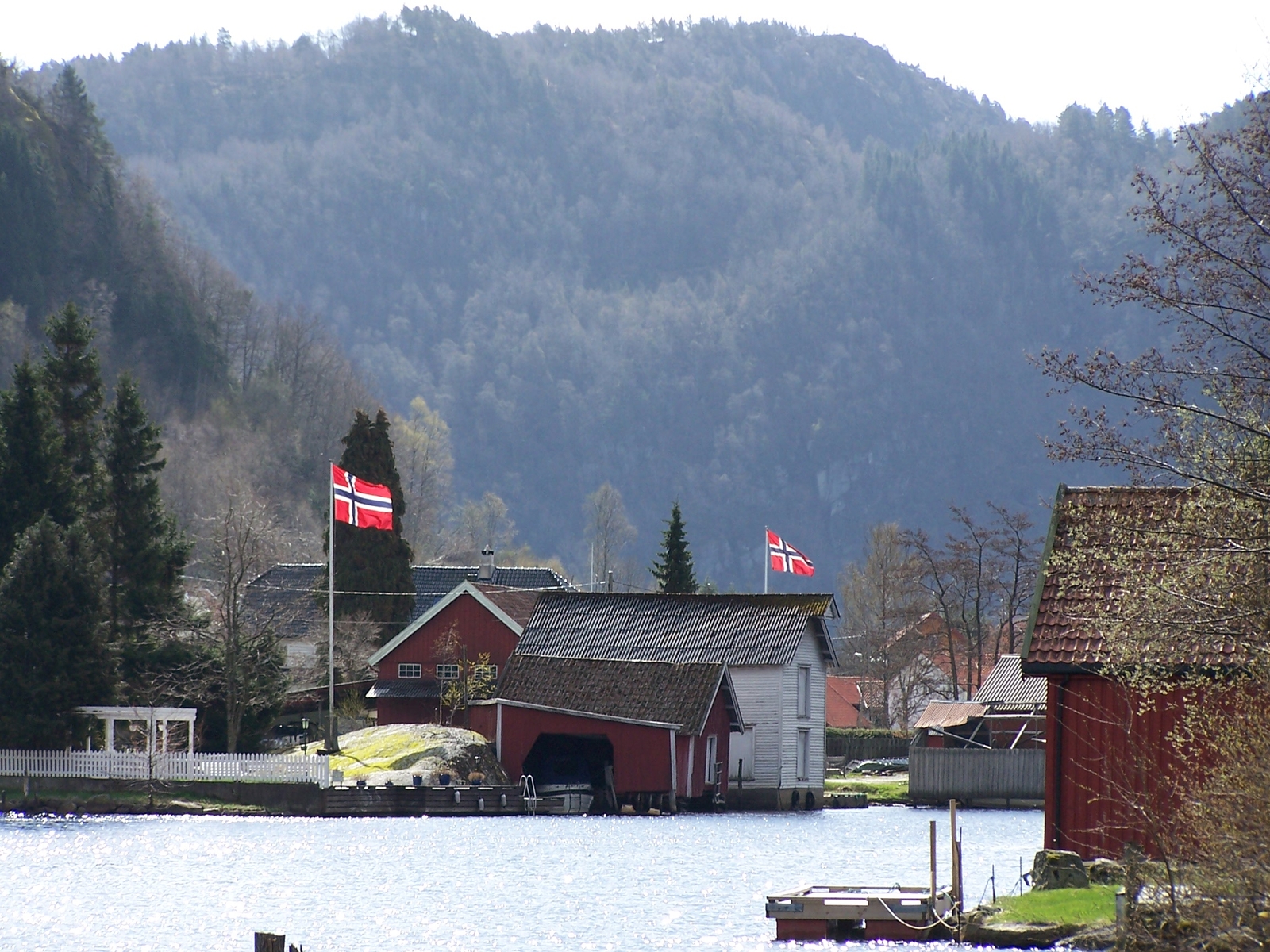 20.Tag.Langsam neigt sich der Urlaub dem Ende zu.Es ist bewölkt.So ganz langsam und in aller Ruhe packten wir schon einige Dinge zusammen,die wir nicht mehr brauchen würden.Wir sind nochmal kurz rausgefahren,an die Fedabrücke,ein allerletztes Mal.Aber es hat nix mehr gebissen.Wir haben das Boot danach aufgetankt,daß alles so ist,wie es bei unserer Ankunft war.Abends gegen 19.00 Uhr fiel uns ja auch mal ein,daß ja der 1.Mai in Norwegen auch ein Feiertag ist und die Geschäfte geschlossen sein würden.Also,nochmal losgefahren zum Einkaufen nach Kvinesdal.Wir wollten doch einige Dinge mit nach Hause nehmen und hatten eigentlich vor,sie am Samstag zu kaufen,da wir noch genügend Zeit hatten,bis die Fähre fuhr.An diesem späteren Abend waren mein Frauchen und ich schon sehr traurig,daß es morgen wieder nach Hause geht.Wir standen sehr oft auf der Terasse und genossen noch ein letztes Mal die Abendstimmung in Feda,die Natur,die Stille und die Ruhe Norwegens.Wir wollten gar nicht ins Bett,denn wir wußten ja,wenn wir wieder erwachen,geht es nach Hause.