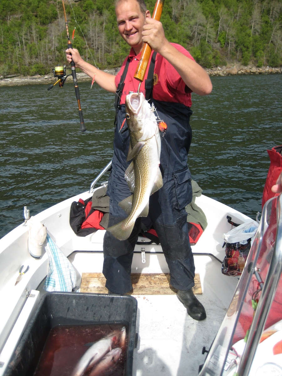 Nun wurde nicht lange gefackelt und ab ging es aufs Wasser. Es irritierte schon mächtig das sich dieser Fjord fast 14 Tage ohne eine Welle darstellte.???:) Die Fangerfolge war mäßig aber immerhin konnte Heiko einen schönen Köhler verhaften und ich fing den schwersten Fisch dieser Veranstaltung einen Dorsch von 115 cm und 15kg.