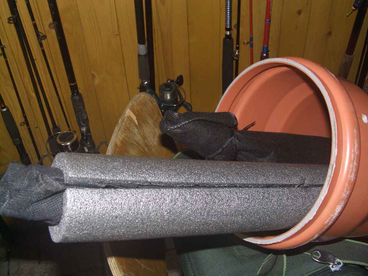 Ich umwickle die Ruten bevor sie ins Rohr kommen mit Heizungsrohrisolierung.