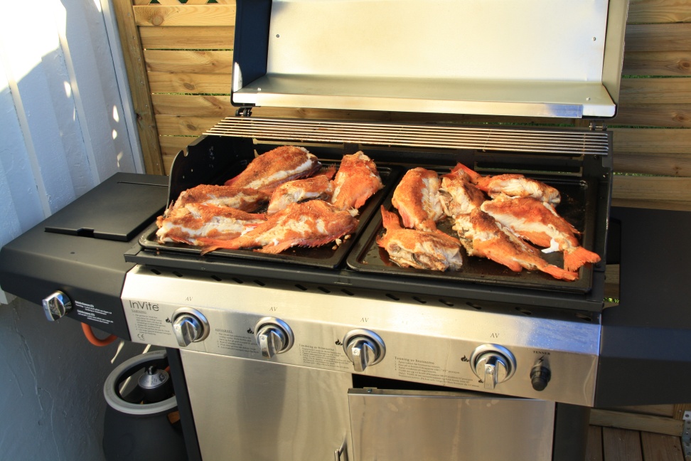 Weiter gehts...Nach einem Mittwoch mit 8 Grad und Nieselregen haben wir heute die Rotbarschnummer gemacht...Klappte an verschiedenen Stellen hervorragend...Schöne Exemplare waren dabei...Haben uns dann auf dem vierflammigen Gasgrill den Rotbarsch mit Haut und Haaren zum Abendbrot gemacht...Einfach genial...Schöne Grüße von der taghellen Insel Senja!!!