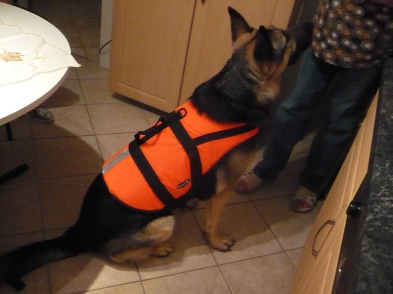 Nicht das jetzt hier jemand denkt, dass der Hund die Rettungsweste auf der Fähre tragen soll :lacher:, nein er soll uns beim angeln begleiten.