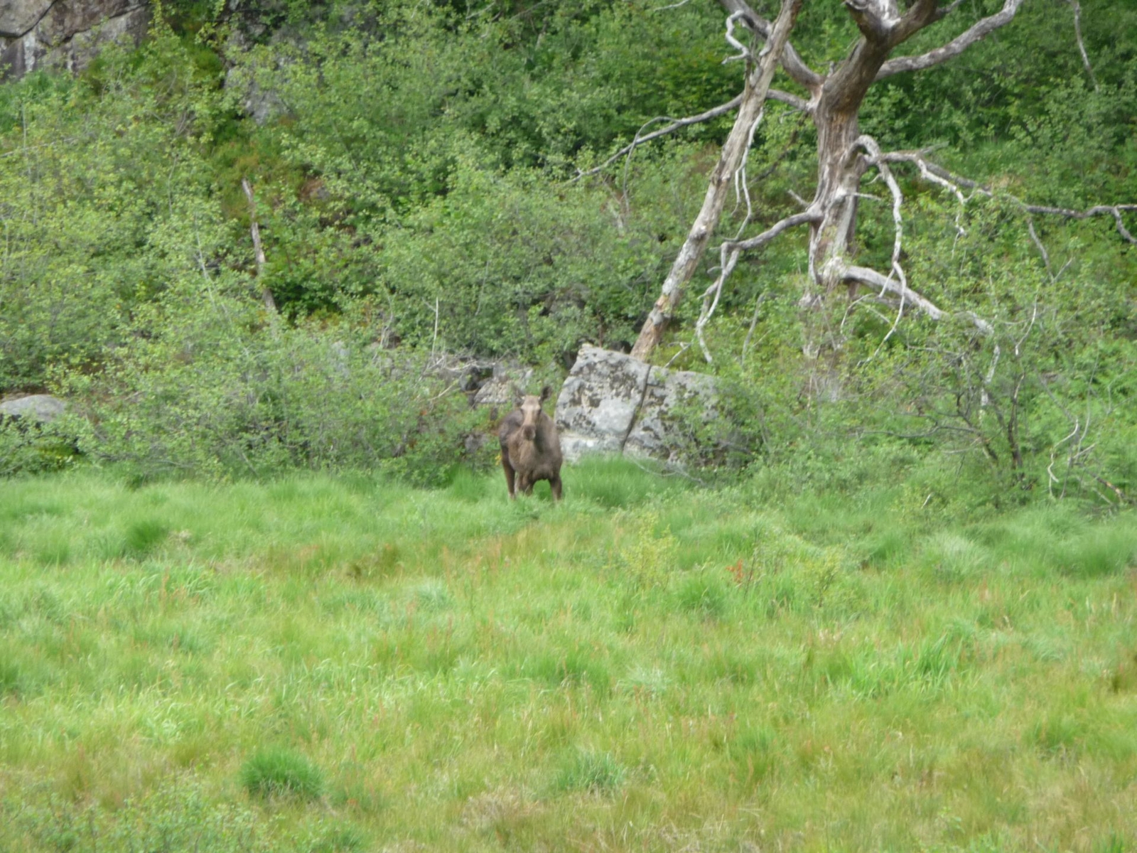 Einen Elch haben wir dort auch gesichtet, ca. 100m von uns am Waldrand stehend, der nach 5 Minuten dann verschwand.