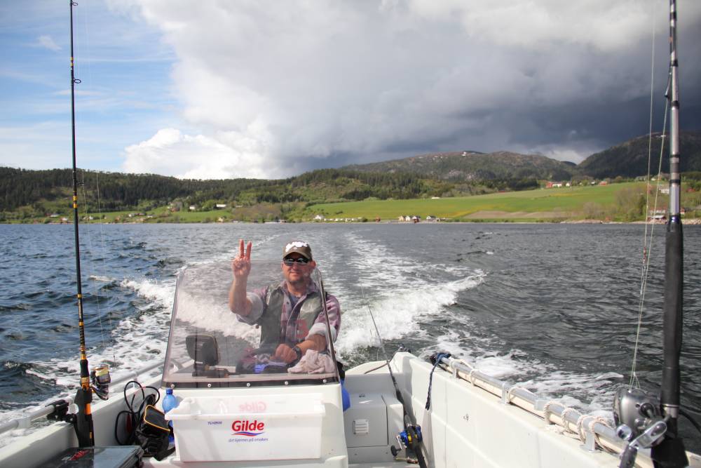 So nun mal zum vierten Tag.Am Vorabend haben wir wie immer"Klönsnack" gehalten,wo-wer-wie und ob überhaupt.Wir waren uns einig das wir mal über den Fjord fahren und vor einer Insel unser Glück versuchen.War doch bisher jeden Tag super Sonnenschein und wenig bis kaum Wind.Aus der Erfahrung von 2009 gab es da reichlich Schellfisch.Also war unser Zielfisch beschlossene Sache.Boote beladen und los.Es waren so denke ich 6-7 km,die wir im Halbgas in 25 Minuten bewältigten.Kaum Wind und Sonne satt,Anglerherz was willst du mehr..