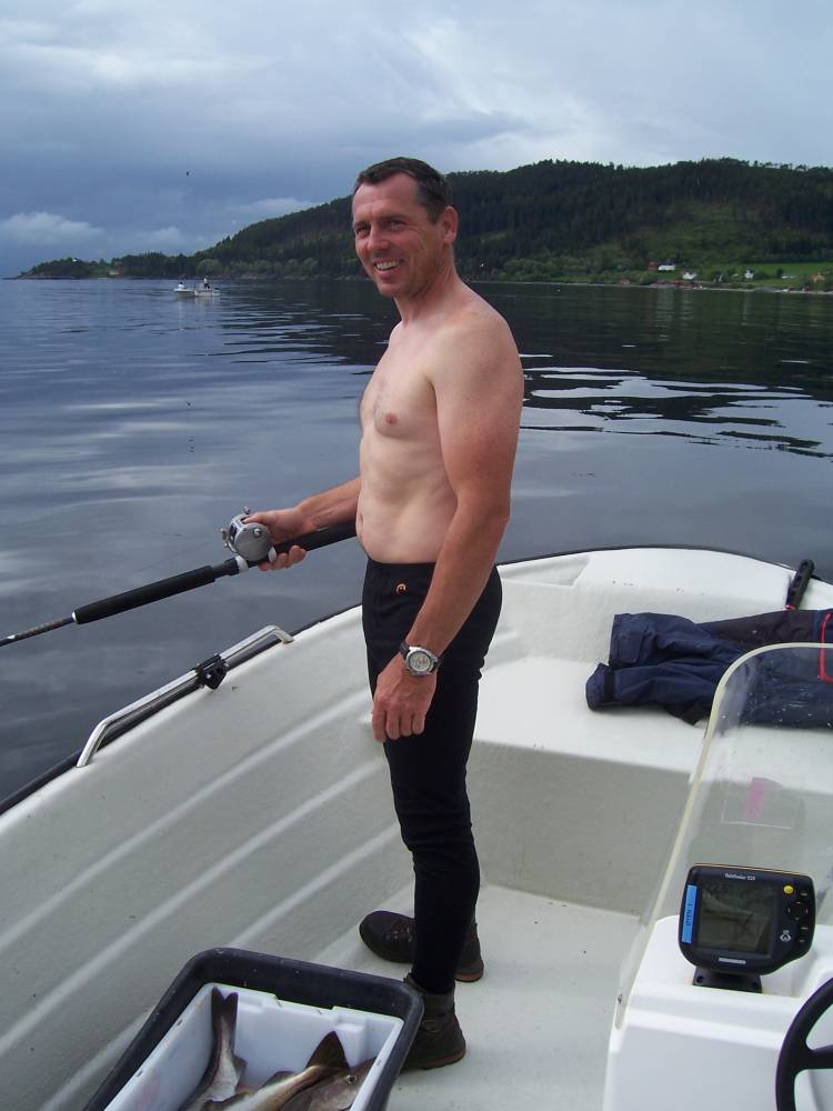 Gestern haben wir uns ja gut erholt und sind wieder zu kräften gekommen.Bei manchen sieht man,das wir in der Woche nicht allzuviel geschlafen haben.Heute ging es zu der Stelle wo Tino und Udo gestern zugeschlagen haben.Die Sonne lachte,der Wind war nicht mehr so doll.Also gemeinsam,alle 2 Boote,losgefahren.Wollten wir doch nicht mehr allzuviel fangen,unsere 15 Kilo haben wir wohl alle erreicht.War aber auch nicht gerade schwer bei dem Fischreichtum im Trondheimfjord.Heute wollten wir mal im flachen wasser(um 7 Meter) versuchen auf Pollack und Dorsch zu schleppen.Kaum waren die Köder im Wasser,und das Boot kam in Bewegung,mussten wir schon stoppen.An 2 Angeln hingen schon Dorsche.Versorgt und weiter,das gleiche Spiel ging so weiter.Es waren auch schöne Pollack dabei.Es hat bei dem Wetter richtig Spass gemacht,keine Pilkerei.Irgendwann mussten wir uns eingestehen,es reicht.Ein paar Dorsche und Pollack(60 cm)waren in den Kisten.Das war es für dieses Jahr,zumindest hier in Hindrum Fjordcenter.