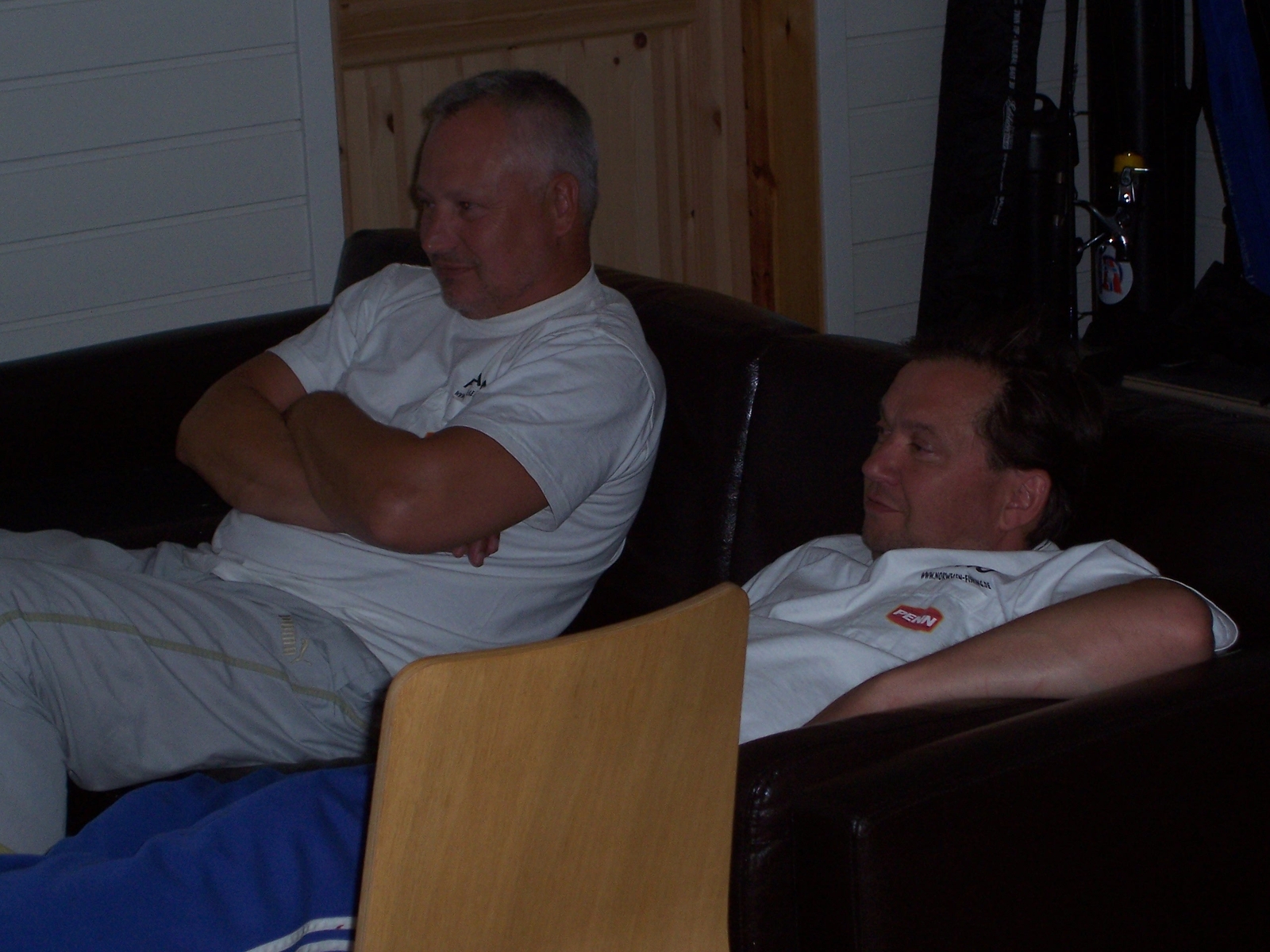 So nun mal zum fünften Tag.Da ich für das leibliche Wohl meiner Angelkollegen verantwortlich war,stand ich jeden Morgen als erster auf und bereitete das Frühstück zu.Ich stand auf und sah aus dem Fenster.Oh Gott,was war das.Wind und Regen ohne Ende.Ich legte mich wieder ins Bett und wollte noch mal aufwachen,vieleicht ist das nur ein Traum.Wir hatten eh keine Eile,die Flut kam gegen 13.00 Uhr.Aufstehen zweiter Versuch,zumindest der Regen verschwand.Wir frühstückten ganz in Ruhe und machten einen Schlachtplan für heute.Ganz in Ruhe Tackl gepackt und ab auf die Boote.Auf Leng war im tiefen nicht zu denken.Also erst mal auf Dorsch versuchen.An die alt bekannte Stelle und Pilker ins Wasser.Was für ein Alptraum,haben wir alle weggefangen?Nach einer Stunde lange Gesichter,hatten Wir keinen Fisch gefangen.So schnell kann der Spuk vorbei sein.Unser "Partnerboot",mit Tino und Udo,fuhren eine Bucht weiter.Also in unbekanntes Gewässer.Wir versuchten wirklich alles aber fingen nichts.Stellungswechsel und ein Versuch in tieferen Wasser auf Pollack oder Köhler.Da war nichts bis garnichts zu holen.Nach 3 Stunden waren wir uns einig und wir beschlossen einen Haushaltstag einzulegen.Kurz die Funke an und Tino bescheid gesagt,das wir zurück fuhren.Es scheint mitlerweile die Sonne,aber der Wind blieb.Hatten wir doch schon genug Fisch gefangen und wir machten uns mit ruigen Gewissen einen schönen Nachmittag.Nur Tino und Udo mussten noch was fangen,für die Truhe und für unser Abendessen.Wir hatten nun Ruhe im Haus und legten uns für einen Mittagsschlaf nieder.An schlafen war aber nicht zu denken.In jeder Ecke klingelte ein Telefon.Die Daheimgebliebenen wollten auch zu ihren Recht kommen und den Pappi oder Mann sprechen.Nun ja,also wieder aufgestanden.Nach 5 Stunden kamen dann unsere "Spezialisten" nach hause.Siehe da,die Männer hatten doch wirklich zugeschlagen.Schöne Dorsche und ein paar sehr gute Pollack lagen auf der Strecke."Petri Heil"sagt man da.Alles schnell verarbeitet.Udo und Marco fuhren zum "Supermarkett" um Reker zu holen.Glück gehabt,haben sie doch die letzten 1,8 Kilo bekommen.Und das zum halben Preis.Zum Abendessen gab es Spagetti mit Sahnesosse.Die Einlage war Fisch(verschiedene)und Reker.Hatte ich auch lange nicht gegessen,war sehr lecker.