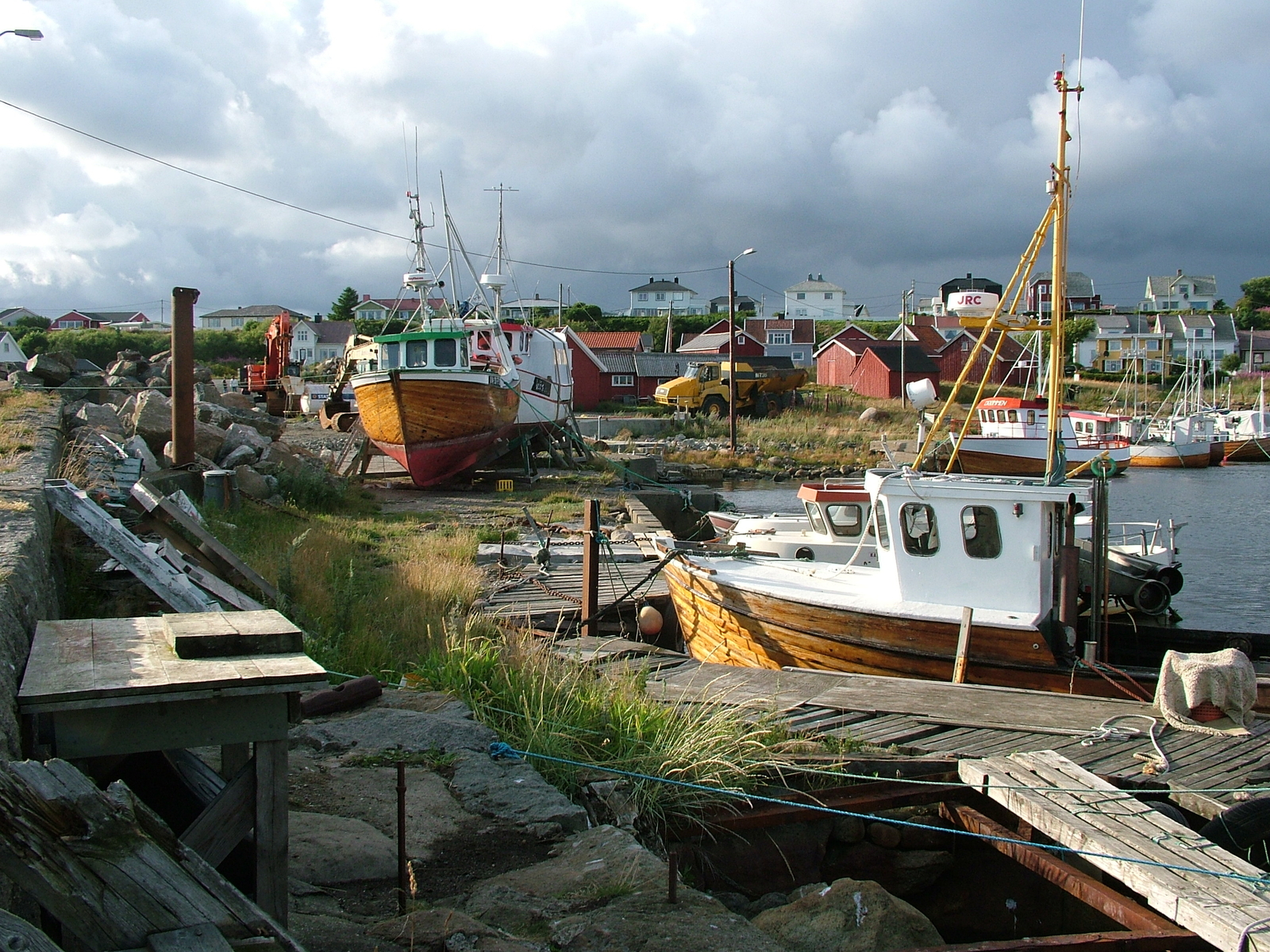 verschiedene Szenen aus dem interessanten kleinen Hafen von Borhaug - bei Sturm hüpften die Wellen locker über die Mole, was wir einmal bei Windtsärke 11 gut beobachten konnten...