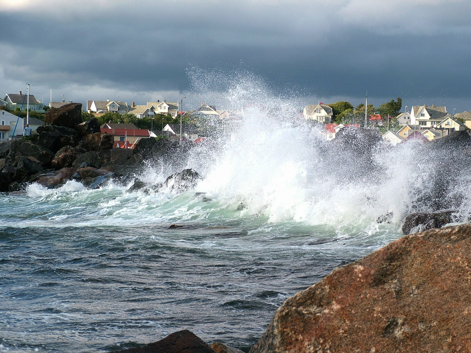 Rings um den Hafen wehren sich große, breite Molen gegen die anbrandenden Wellen der Nordsee und glätten das Hafenwasser gegenüber dem meist deutlichen Wellengang außerhalb ab. Wie schon Hoddel in seiner Beschreibung von Borhaug schreibt, sind die Wellen auch bei leichten Winden durchaus bemerkenswert und wenn ich mit dem kleinen Boot aus dem Hafen herausgefahren bin, dann verschwand das Boot schon zwischen den Wellen völlig.
