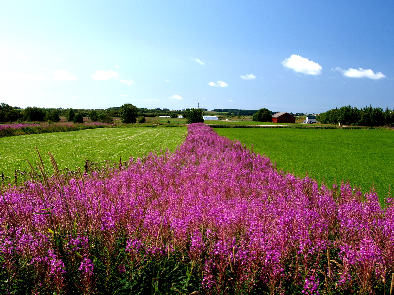 Abgesehen von den vielen kleinen Waldstückchen ist die Landschaft zwischen Nordsee und den angrenzenden flachen Bergen von Feldern und Wiesen geprägt und die mit weißer Folie eingeschnürten Heuballen leuchten in dieser herrlichen Landschaft weithin sichtbar.