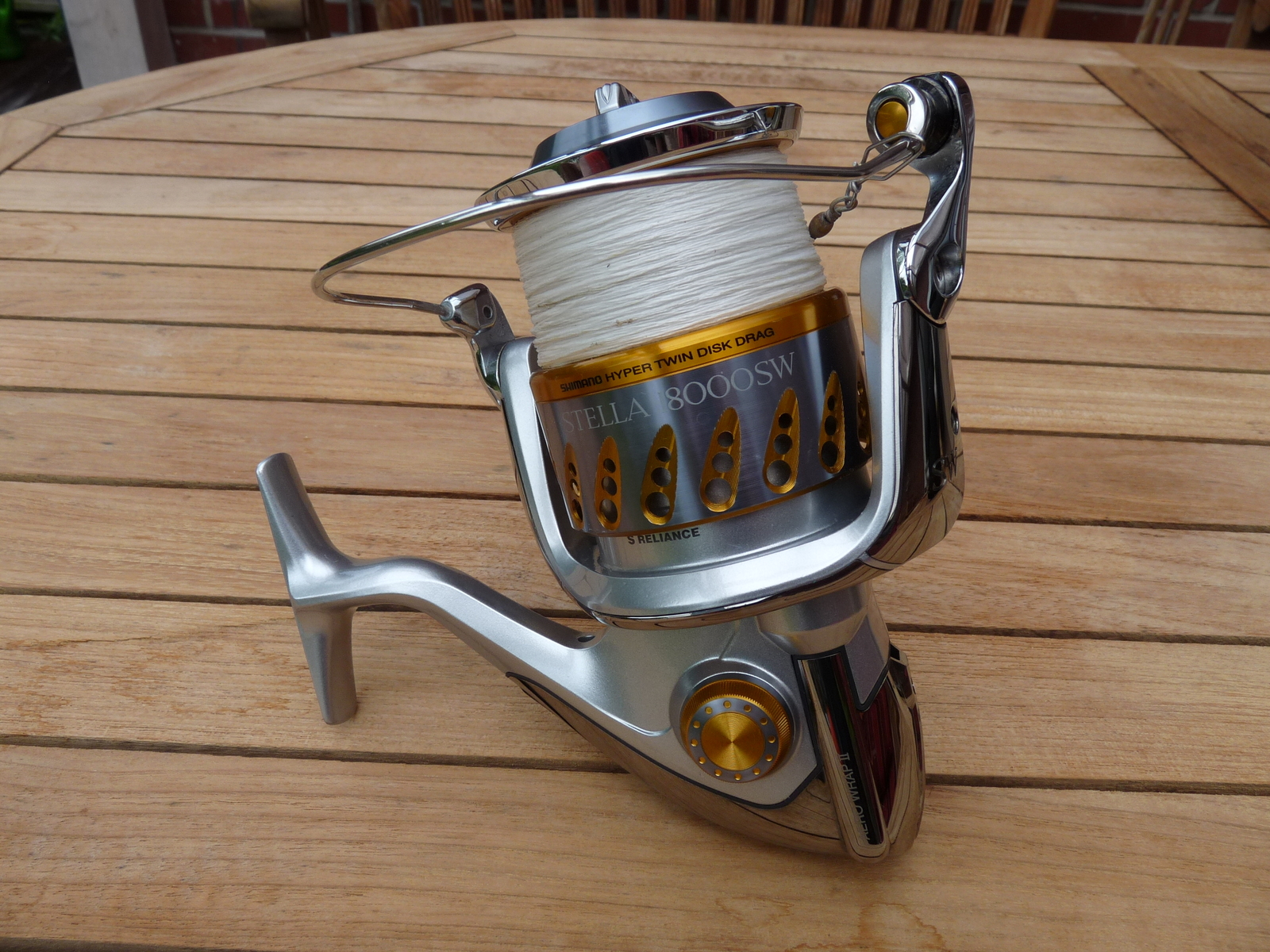 Die Rolle ist mit Berkley Whiplash Chystal voll bespult, Tragkraft der Schur 21,7 kg.