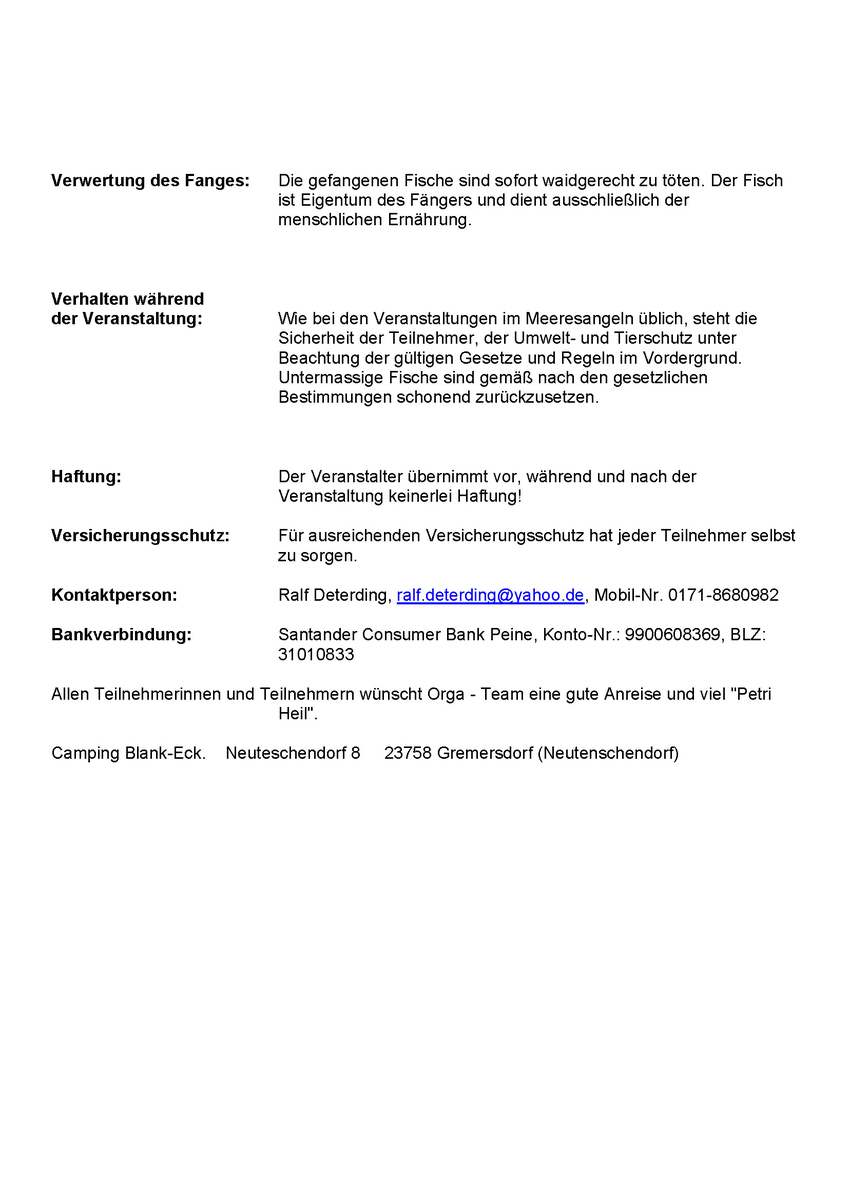 Wir haben noch drei Plätze frei und würden uns freuen wenn sich interessierte Angelfreunde finden.