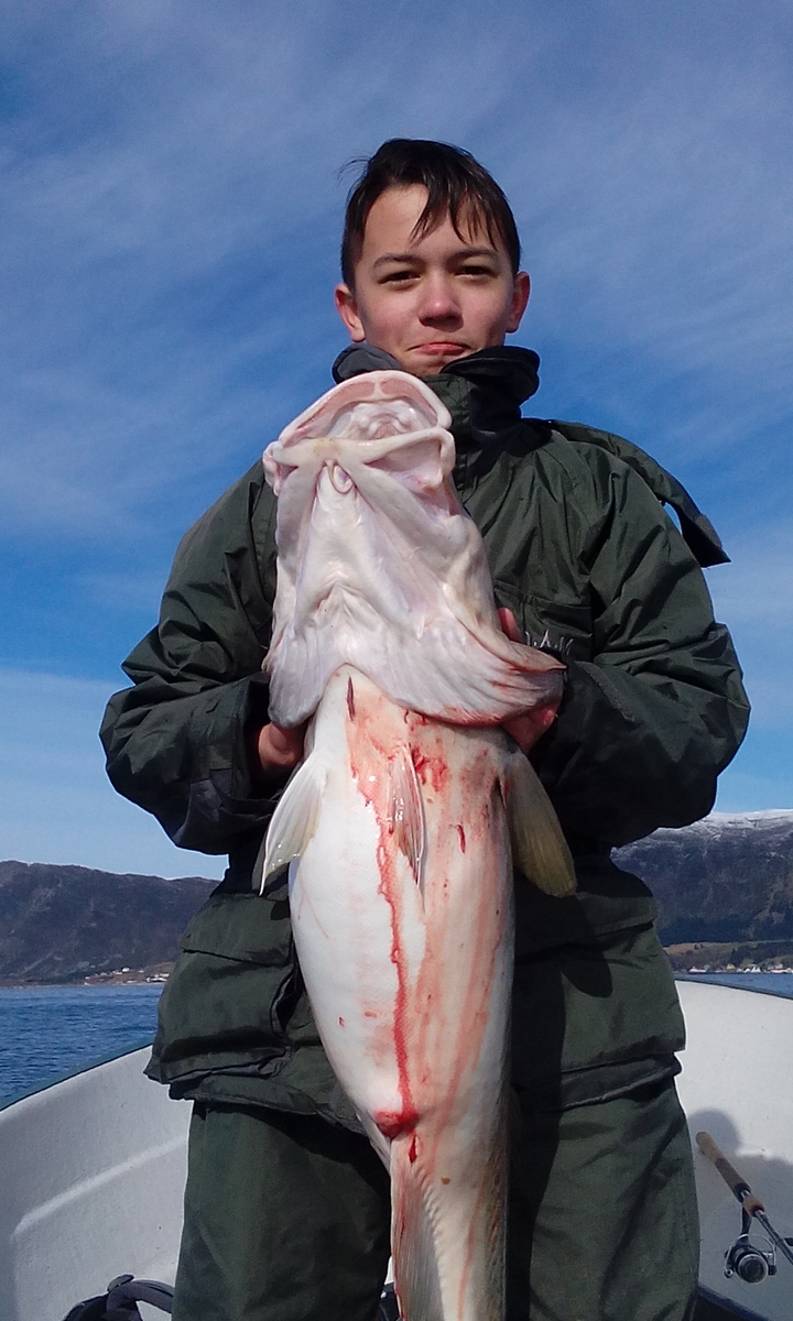 Nur ein wenig Richtung Heissa, weg vom Ufer bei 100 Meter tiefe gab es richtig gute Seelachse und einen für meinen Geschmack in Ålesund Ausnahme Dorsch, 13 Kg. und 112cm lang der größte den ich bisher in der Gegend an Land bzw.. aufs Boot bekommen habe.