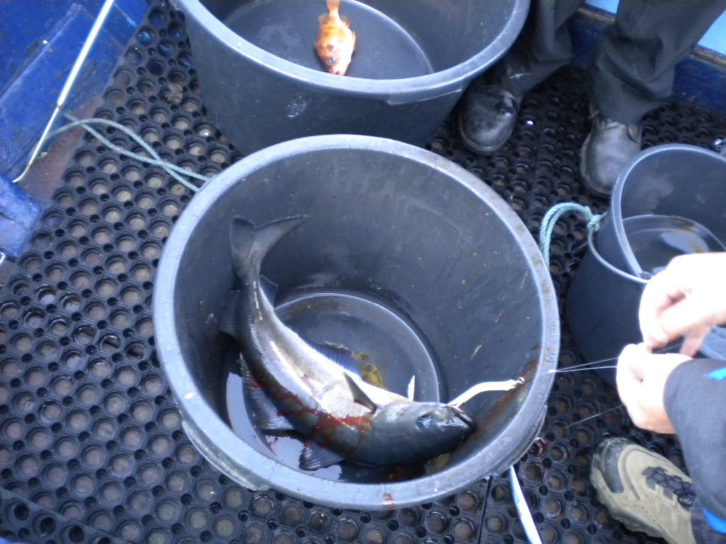 so sind wir zu den lamekletten gefahren und hatten einen fisch nach dem anderen (hauptsächlich sei, ein paar dorsche, leng, pollak, barsche, makrelen, heringe....) - das rodman boot hat ein gutes navi und so gibt es in der nähe der lamekletten auch ein kleines angelgebiet (ist im navi eingezeichnet) mit max. 50 meter tiefe und da bissen sie auch wie verrückt.