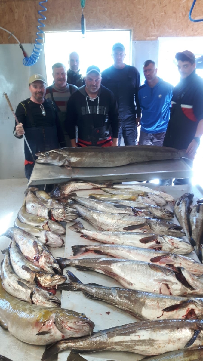 Wir , eine Truppe von 8 Leuten aus dem schönen Ostprignitz Ruppin und Berlin , verbrachten unseren diesjährigen Angelurlaub auf der Insel Smøla bei Lilli (Smøla Feriesenter) Reisezeit vom 01.07 bis 08.07.Zwei Jungs aus unserer Truppe kannten die Anlage bereits vom letzten Jahr , was uns dazu bewegt hat dort zu buchen .Da natürlich alle heiß und völlig unterangelt waren ging es direkt los aufs Wasser . Verteilt auf 3 Boote (Kaasboll mit 60 PS) ging es dann zu den Hotspots .Christian konnte an diesem Nachmittag direkt seinen ersten Meterfisch ins Boot holen . Einen Dorsch von 1,10m und 16 Kg . Gefangen in ca 80 Meter Tiefe auf Makrelenfetzen. Die anderen beiden Boote waren auch gut dabei und wir konnten zum Ende des Tages zahlreiche Seehecht und Dorschfilets in den Froster legen . Nach einer dringenden Mütze Schlaf und gutem Frühstück ging es dann am nächsten Tag auf die Trondheimsleia ,um unseren Zielfisch für diesen Tag, dem Seehecht, nachzustellen . Dies ist uns auch geglückt und wieder fanden etliche super Fische den Weg in unsere Kisten .Am 3. Tag ging es wieder auf die Leia und ich hatte meine Sternstunde der Woche . Auf ca 90 m Tiefe und einer halben Makrele als Köder , konnte ich einen 1,70 m langen und 23kg schweren Leng landen . Was für ein Fisch . Christian sah an diesem Tag mit seinem zweiten Meterfisch , Leng von 1,16 , ziemlich blass dagegen aus .Wir hatten dann die ganze Woche über immer wieder was in unseren Kisten um es später gleich zum Abendessen auf den Tisch zu bringen oder um die Kühlung zu füllen . Wir könnten es an den letzten beiden Tagen auch ruhiger angehen lassen weil unser Limit schon fast erreicht war.Alles in allem eine super Angelwoche mit echt tollem Wetter . Die Anlage ist auch zu empfehlen. Gute Boote, Filetierraum mit Tiefkühlzelle , nebenan Supermarkt und Tankstelle , alles was der Angler braucht .