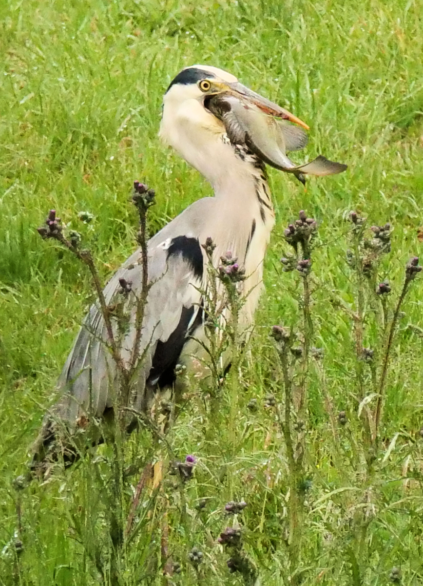 Hat der Reiher es geschafft, die Schleie zu schlucken? Ich habe das mal beobachtet mit einem Blei - den hat der Reiher nicht herunterbekommen.