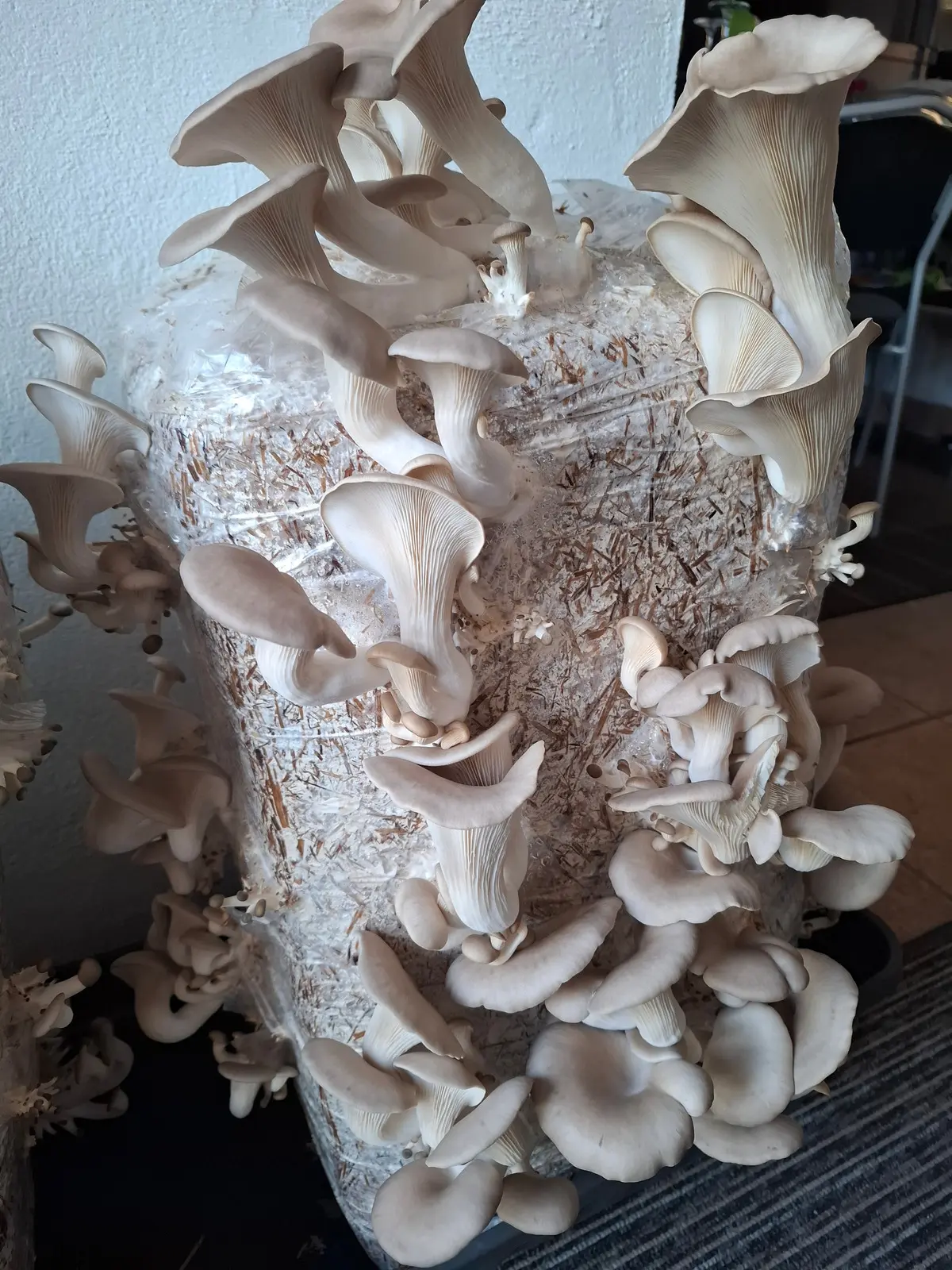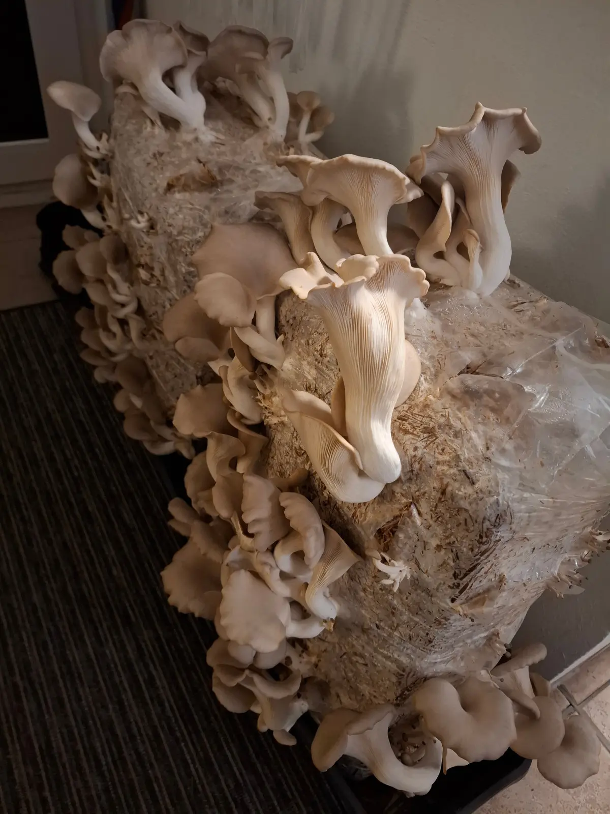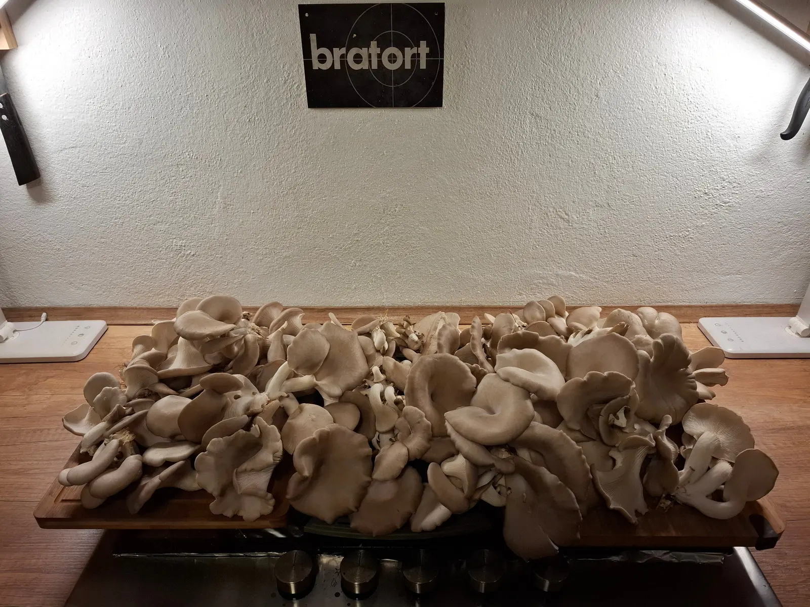 im Wald ist nichts mehr los und wir haben mal wieder bei den Austernseitlingen zugeschlagen. Erste Ernte mit knapp 3,3 Kg, und es folgen noch mindestens zwei Ernten mit abnehmendem Erfolg. Die Qualität der Pilze ist hervorragend. Wir haben sie auseinander gezupft, nur leicht gedünstet, vakuumiert und eingefroren