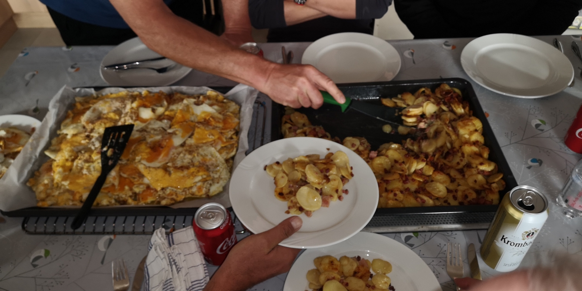 5kg Bratkartoffeln und 60 SpiegeleierAm nächsen Morgen wurde pünktlich aufgestanden und gefrühstückt , als es aufeinmal um kurz vor 7 Klopfte und uns Jakob mitteilte das wir die Boote doch erst heute Abend bekommen können. Also Kriesensitzung einberufen und beratschlagt was wir dann mit dem Tag anfangen,wir einigten uns darauf den Tag auf dem Steg zu verbringen und unser Glück mit der Pose zu versuchen.