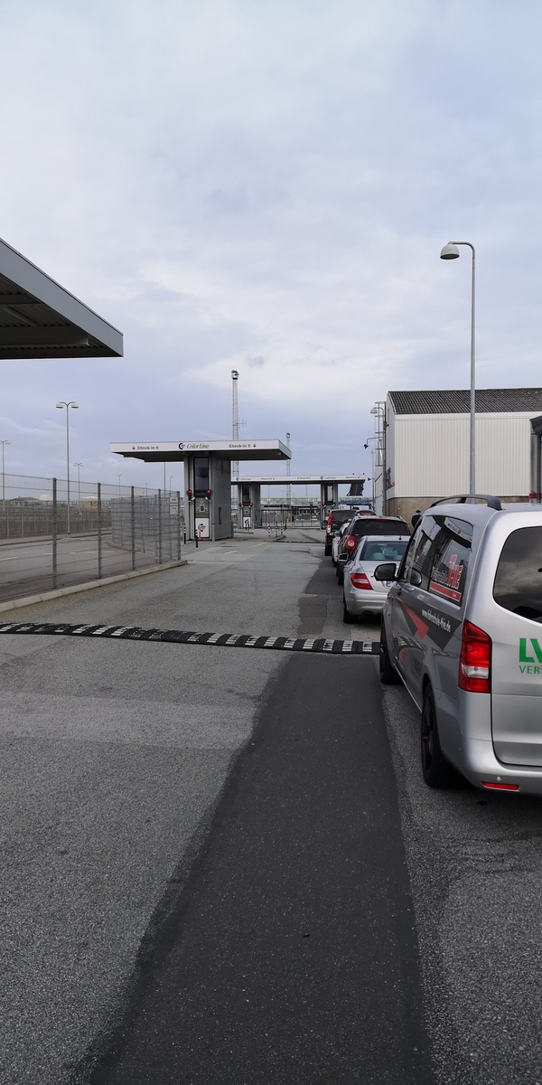 Da wir ja schon den ganzen Nachmittag Verkehrsfunk gehört haben und uns eine Vollsperrung auf der A2 bei Hannover den direkten Weg versperrte,sind wir sofort überland gefahren und haben uns über Minden, Nienburg usw. bis nach Walsrode durchgeschlagen und dann auf die Autobahn. In Hamburg hieß es dann abermals runter von der Autobahn, da ein Stück der Bahn neuen Asphalt bekommen sollte, also quer durch die Stadt der Umleitung folgen und dann wieder den direkten Weg,welchen wir ab jetzt ohne Behinderungen bis Hirthals fortsetzen konnten.Um 9 Uhr standen wir dann endlich in der Schlange die durch das Tor zum gelobten Land führt
