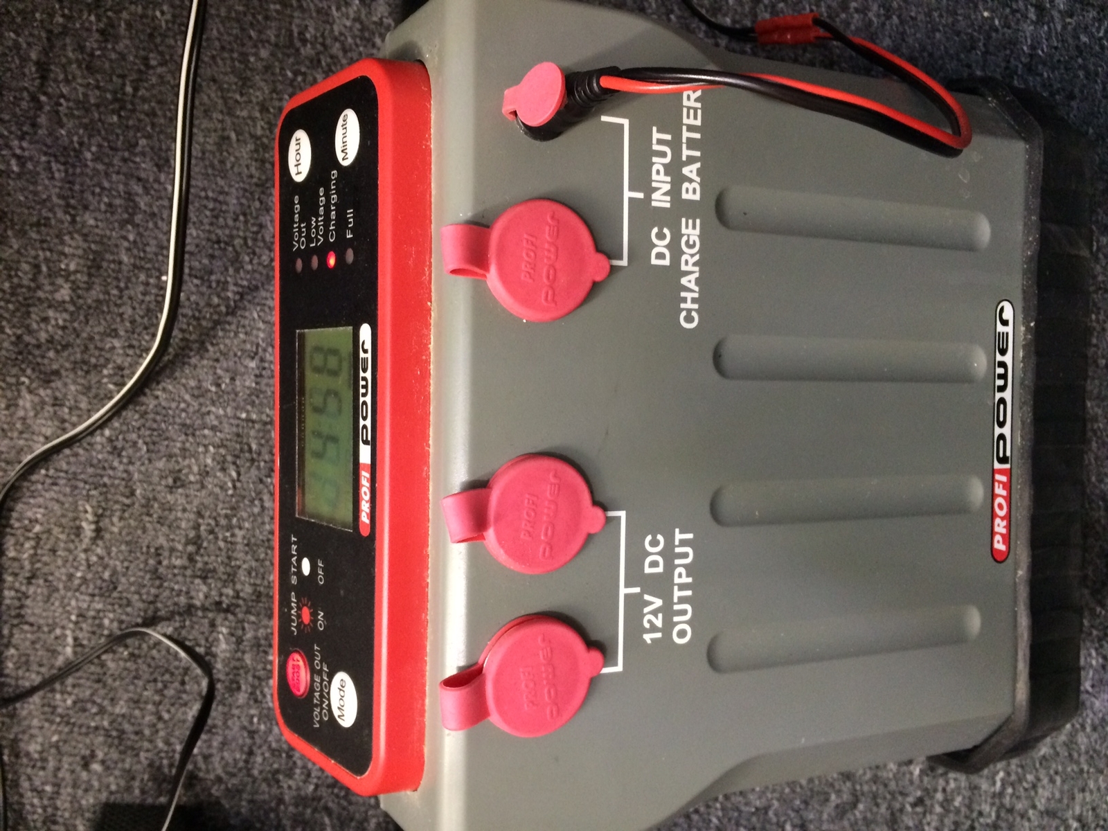 Hab die Klemmen von der E-Rolle gegen Zigarettenanzünderstecker getauscht. Hinten am Gerät ist noch ein USB Anschluss.