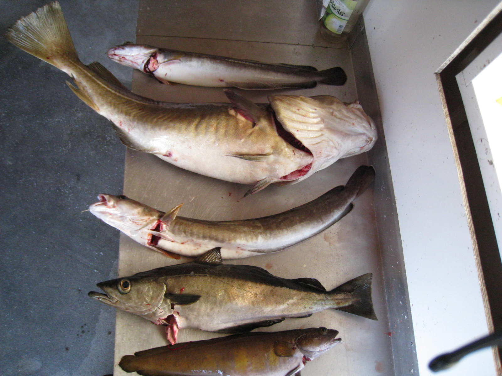 Hallo! Heute wieder Traumwetter und von 8.30-14.30 geangelt, unser Senior und Norwegenneuling hatte heute seinen großen Tag 85er Dorsch, und 2 70er Pollack er war happy ansonsten viele kleine Köhler die alle wieder über Bord gingen.