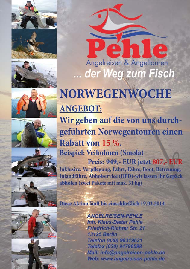 Wir geben auf unsere restlichen Norwegen-Touren einen Rabatt von sagenhaften 15 %. Diese Aktion gilt bis zum 19.03.2014!Schönen Sonntag