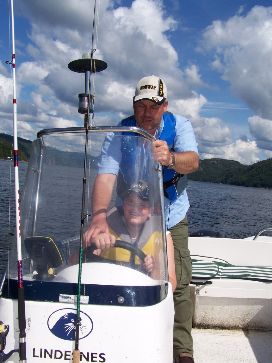 Der Donnerstag vor unserer Abreise begann mit spiegelglatter See und strahlenden Sonnenschein. Oft genug hatte ich mir die Mietboote vom Hüttenservice am Hafen in Spangereid angesehen. Lange genug hatte auch Sohnemann genervt, das er wieder Boot fahren wollte. Schließlich hatte es bei Suse ja auch geklappt. Das Boot von unserem Haus hatten wir nicht gemietet, es war mir für Andy einfach zu unsicher. Als dann aber meine Frau fragte, ob wir uns für den einen Tag nicht das Boot am Hafen mieten wollen, gab es kein halten mehr.