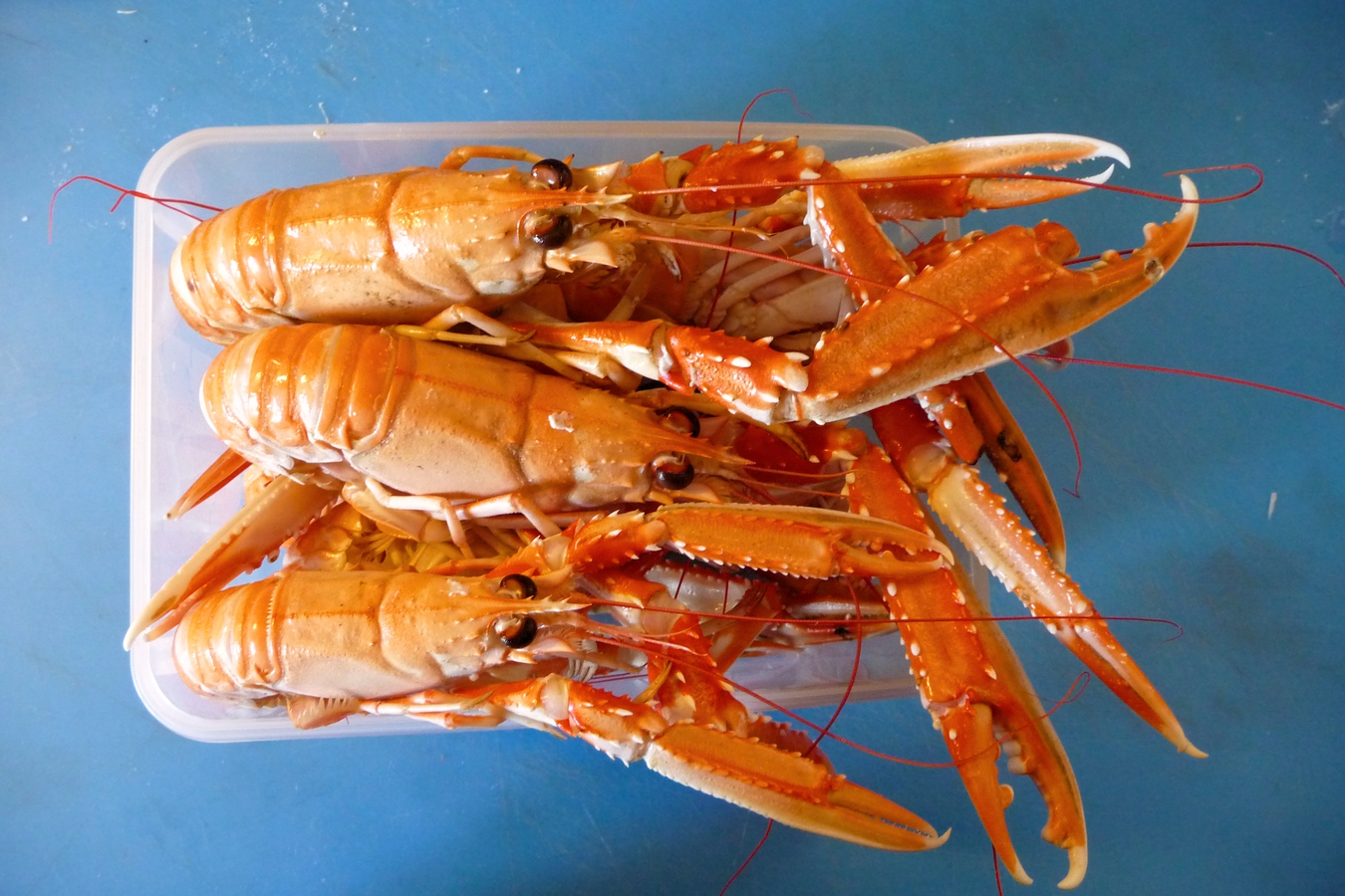 Direkt neben ihrem Laden hat sie einen Seeteufel von 26 kg im Hafen gefunden und die Herren vom benachbarten Fischladen haben ihn dann gekeschert.