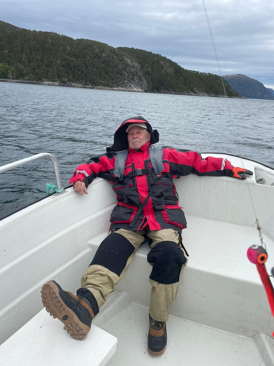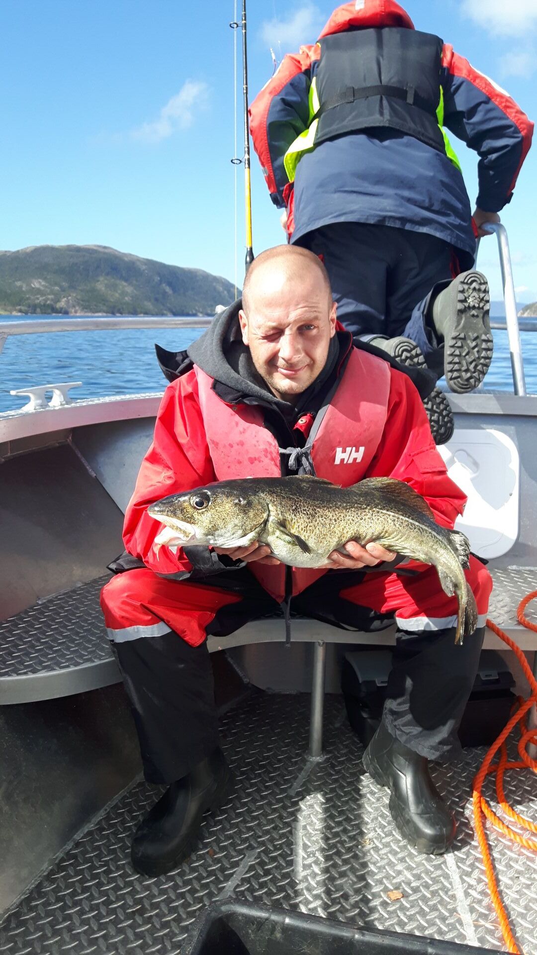 Heute, Freitag, sind HighTide für 8.19 und 20.52h vorhergesagt. Heiß wie Frittenfett wollten wir natürlich die erste nicht verpassen, also um 6.00 aufgestanden, gut gefrühstückt und gegen 7.20h waren wir im Boot. Nun ja, bis 10:00 waren wir draußen bei Nieselregen, obwohl YR ein Regenende für 8 Uhr vorhergesagt hatte. Leichten Wind gab‘s gratis dazu, Fische dafür (fast) keine. Wir sind auf Tipp von Arve ganz langsam rechts rum Richtung Vestnes gefahren, an einem Landvorsprung mit Waldabholzung soll Dorsch, Pollack und Seelachs stehen, aber leider Fischanzeige Zero. Den ersten Dorsch konnte meine Frau dann doch verhaften, aaaaber, da dies der erste Fisch war, wurde er wie immer begnadigt und durfte wieder schwimmen. Makrelen sind noch keine hier, sollen aber in Kürze eintreffen, im Gefolge dann „massenhaft Seehechte“…