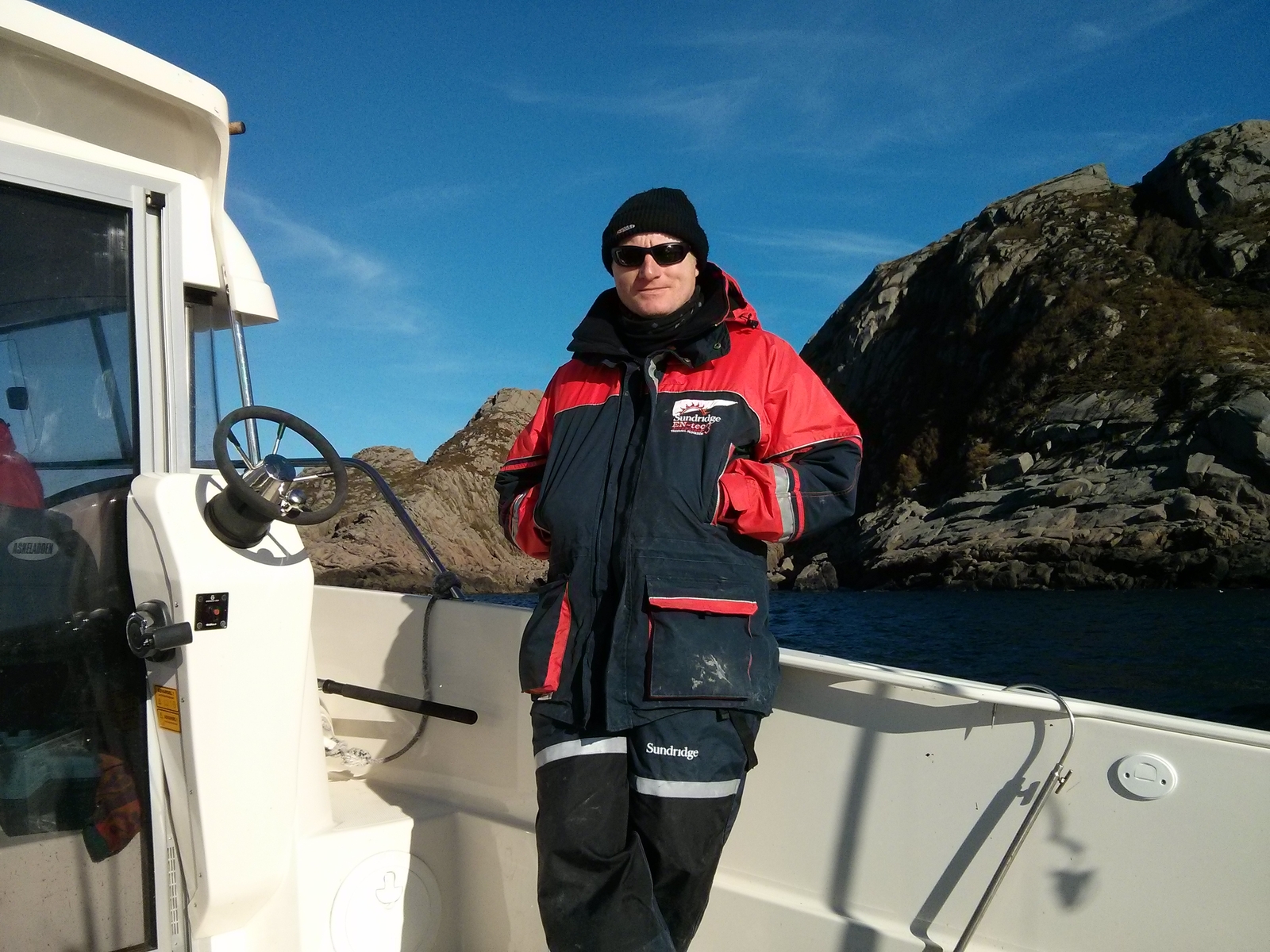 An angeln war zeitweise gar nicht zu denken. Wegen der starken Drift selbst auf der Windabgewandten Seite, haben wir mit einem alten Krabbenkorb als Driftsack experimentiert. Das funktionierte auch besser als gedacht und so konnten wir wenigstens, wenn auch mit mäßigem Erfolg angeln. Ehrlich abgesehen von der unmittelbaren Nähe zur Lachsfarm haben wir vieles versucht aber leider nichts gefangen. An der Farm haben wir dann wenigstens ein paar gute Pollaks rausgezogen. Wir sind nun schon das 8. mal in der Ecke unterwegs gewesen und haben, Karten, Erfahrung und immer eine guten Preis gehabt. Wir haben diesmal einhellig für uns die Entscheidung getroffen im Jahr 2015 nicht wieder dort hin zu fahren. Grund ist nicht nur das Erlebte mit Hans Olav sondern auch die Tatsache, dass es totz Auf und Ab was die Fänge betrifft gingen die Fänge immer mehr zurück.