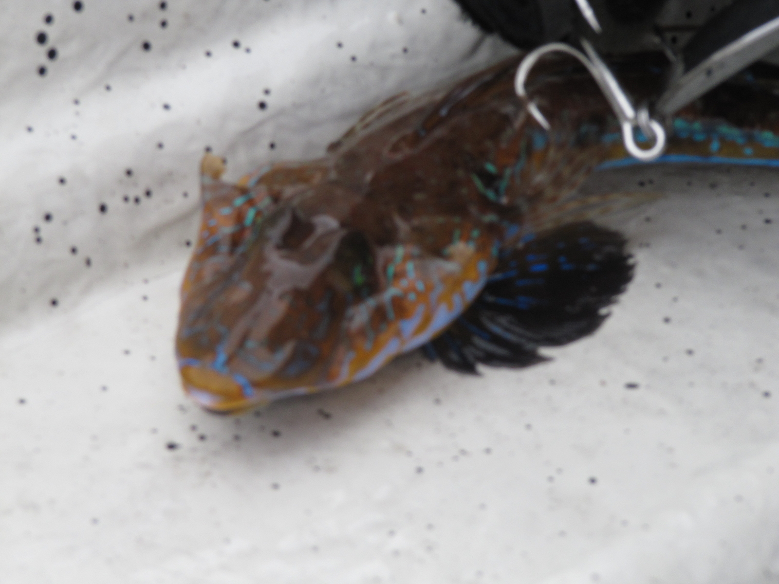 bei unserem Norwegenurlaub vor 2 Wochen (nahe Lyngdal) hat ein Kumpel einen Fisch gefangen, den ich vorher noch nie gesehen hatte. Gehakt wurde er am Rücken mit einem Pilker, er hat also nicht angebissen. Nach einem kurzen Fotoshooting durfte er weiterschwimmen ![]()