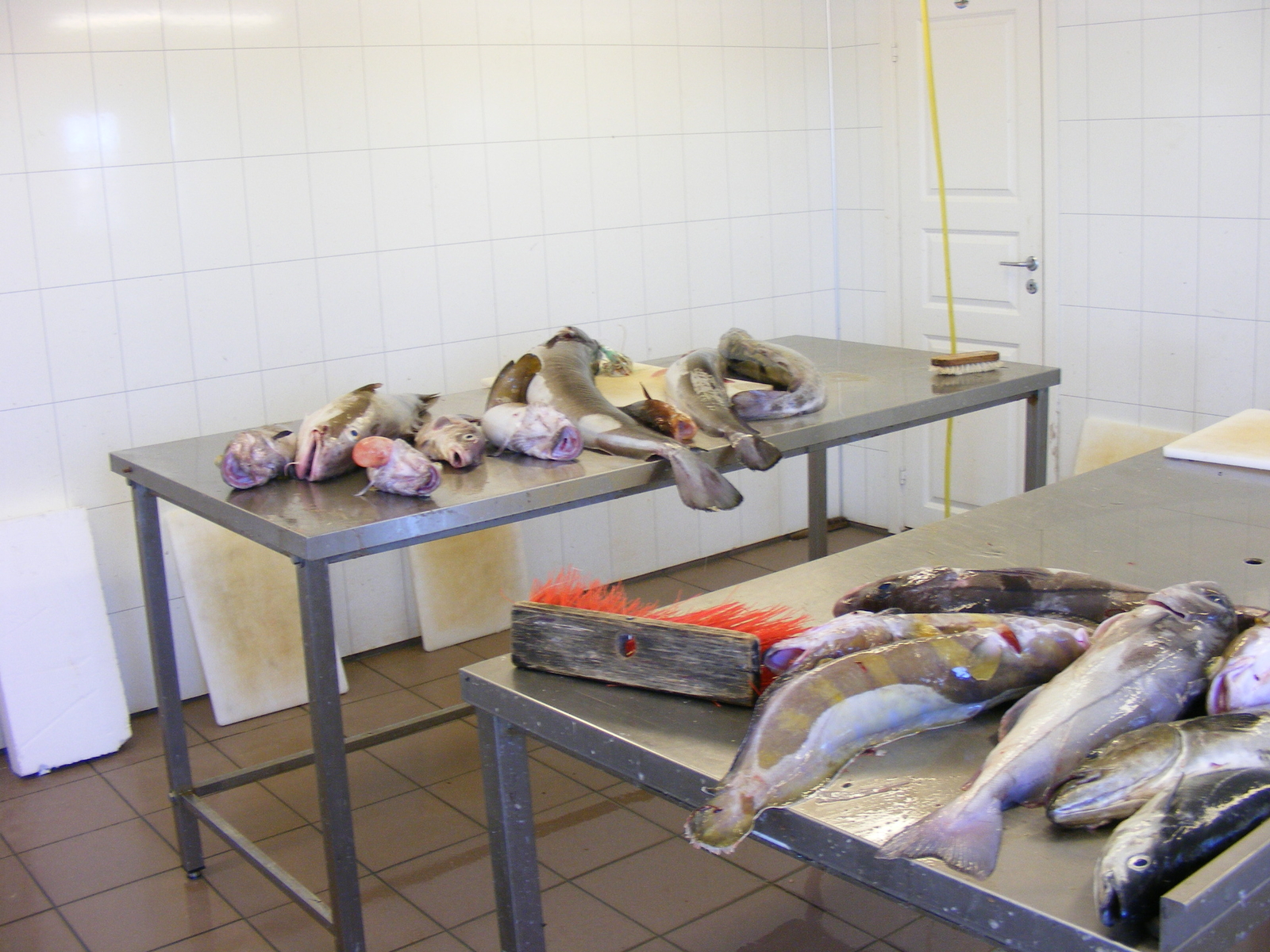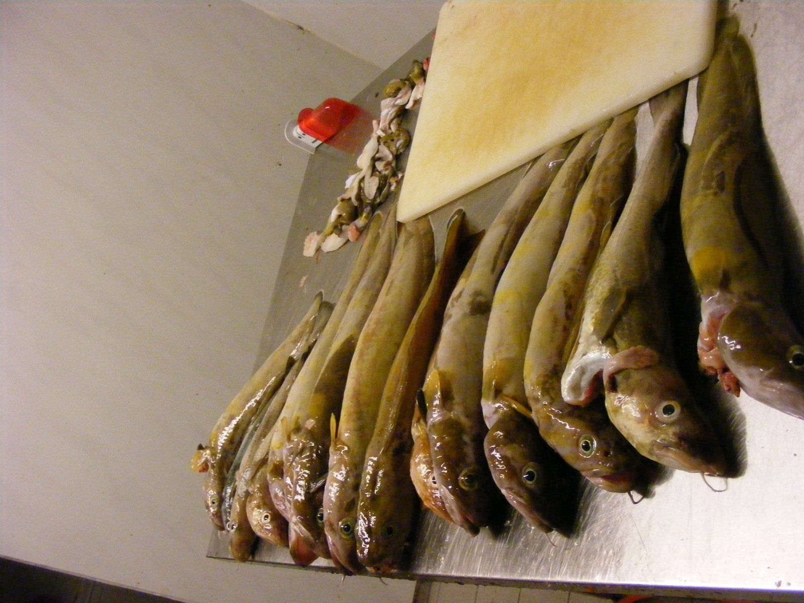 Jedenfalls hatten wir ein schöne Tour, bis 20 Uhr und dann sind wir mal reingefahren, die ganzen Fische müssen ja auch noch filitiert und verpackt werden. Olli hat dann schön filetiert, ich verpackt. Zwischendurch hab ich dann mal eben meinen Göttergatten zum Essen geholt. Es gab Leng mit Kartoffelpü und Zwiebeln. Genau das richtige um 23:30 Uhr! Heute Morgen um 1:33 Uhr, waren wir dann fertig! Dann mal noch eben ein Mädchenbier und ab in die Falle..Heute morgen Lagebesprechung und Tourenplanung ! Lumbs haben wir jetzt schon gut gefangen, mir fehlen noch die Köhler und Pollacks ect…