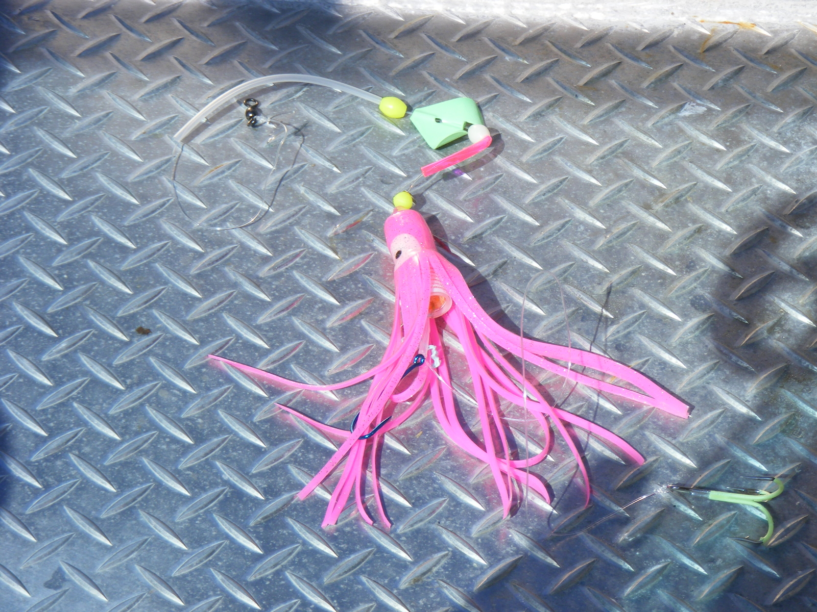 Also eingeholt und lieber wieder Pilken, Naturköderangeln ist eh langweilig. Ja und da hab ich mir dann auf den Pilker immer einen Fetzen ranmachen lassen und siehe da, dann klappt´s auch mit den Lumbs! Zack, hat die Ela gleich mal mehr Lumbs an Board geholt wie der Olli!