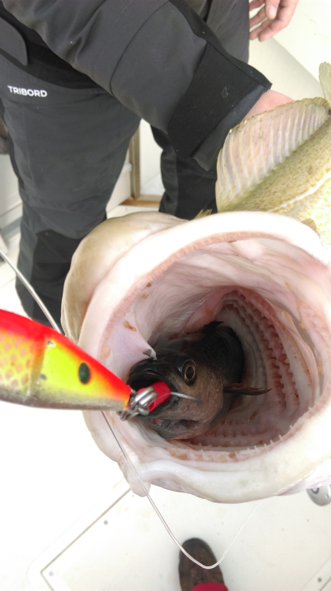 Leider war der größte Pollack mit 93cm und 6,5 kg nicht verwertbar, da er komplett mit Parasiten bestückt war. Sowas habe ich noch nicht gesehen - aussen jede Menge offene blutige Stellen, einige weiße mir unbekannte Paraisten (so dick wie ein kleiner Finger) konnte man äußerlich aus dem Fleisch drücken (sahen teils aus wie kleine Aliens mit 6-8 Beinchen, insgesamt so groß wie etwa Bienenmaden fürs Forellenangeln. Die kompletten Innereien waren mit Band-oder Spulwürmern befallen, einfach widerlich. Wirklich schade. Alle anderen Fänge auch die Tangdorsche waren absolut Parasitenfrei und gut verwertbar.