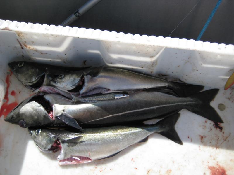 2 kleinere Lengs, 1 Seeteufel, 3 Pollacks, 1 Köhler und einen Dorsch.