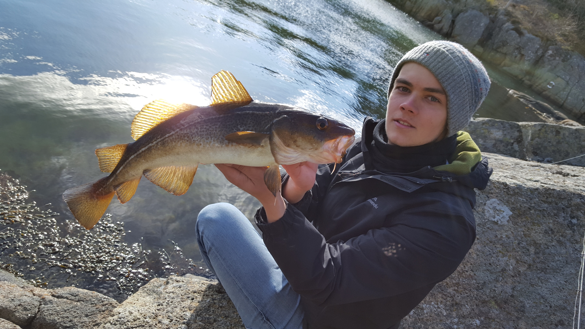 In Abelnes entscheiden wir uns dann für eine Wander-Tour mit unseren Spin-Ruten. Und das ist eine mega-geniale Idee!! Wunderschöne Ecken und Buchten erreichen wir. Ein Traum!! Die Sonne scheint, das Wasser schimmert türkis. Und wir fangen geniale Fische an den leichten Ruten. Zwei wunderschöne Tangdorsche, die wieder zurück durften und vier tolle Pollaks, von denen zwei in der Pfanne landen. Natürlich mit Reis, gebratenen Zwiebeln und Drei-Pfeffer-Soße von Knorr...