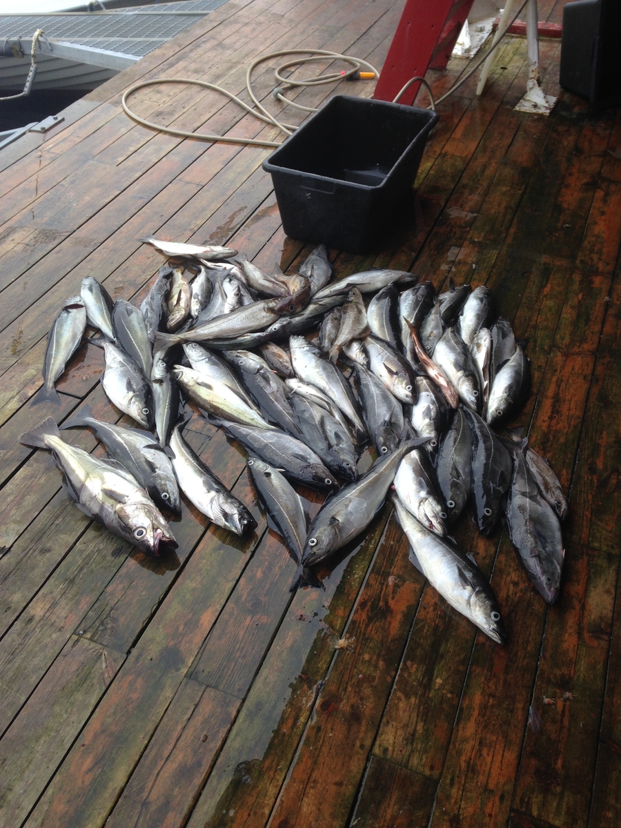 Fazit. Mit dem Wetter hatten wir dieses Jahr etwas Pech. Oft konnten wir nicht rausfahren. Dennoch ist es uns gelungen die Fischkisten doch noch zu füllen. Peter hatte mit seiner Spinnrute und den kleinen Pilkern immer wieder Glück direkt in der Brandung noch weitere schöne Pollacks zu fangen. Wir hatten Köhler, Makrelen und ein paar Lengfiles in den Kisten. Unser Vermieter Georg besorgte uns auf eigenen Wunsch noch große Lachs direkt aus der Lachsfarm. Tiefgefroren und ausgenommen für 5,90 Euro das Kilo. Die werden besonders gut schmecken