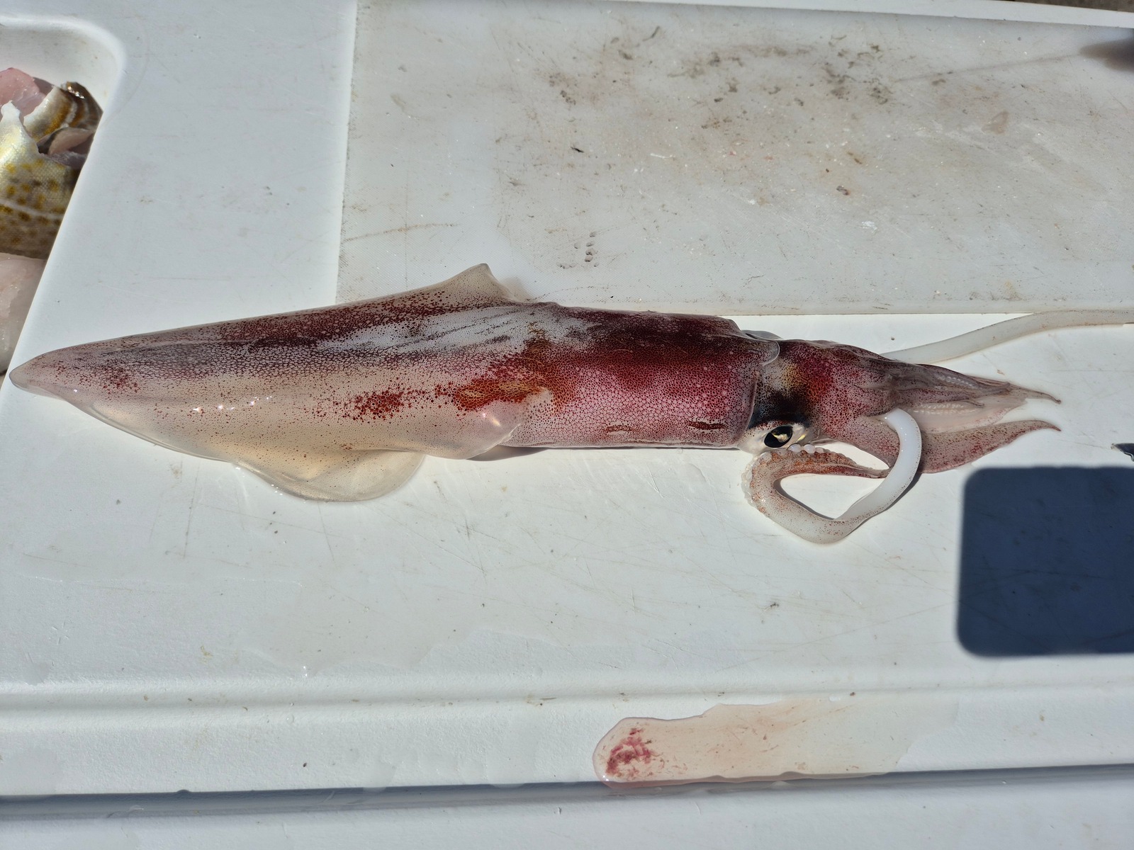 Wetter war bisher gemischt, erst Wind, nun 2 warme Tage mit fast zu wenig Wind. Fischarten hatten wir schon viele dabei... Gute Dorsche und Pollack, einige Schellfische und heute hatten wir folgenden als Doublette... wobei einer beim Landen wieder abgefallen ist.