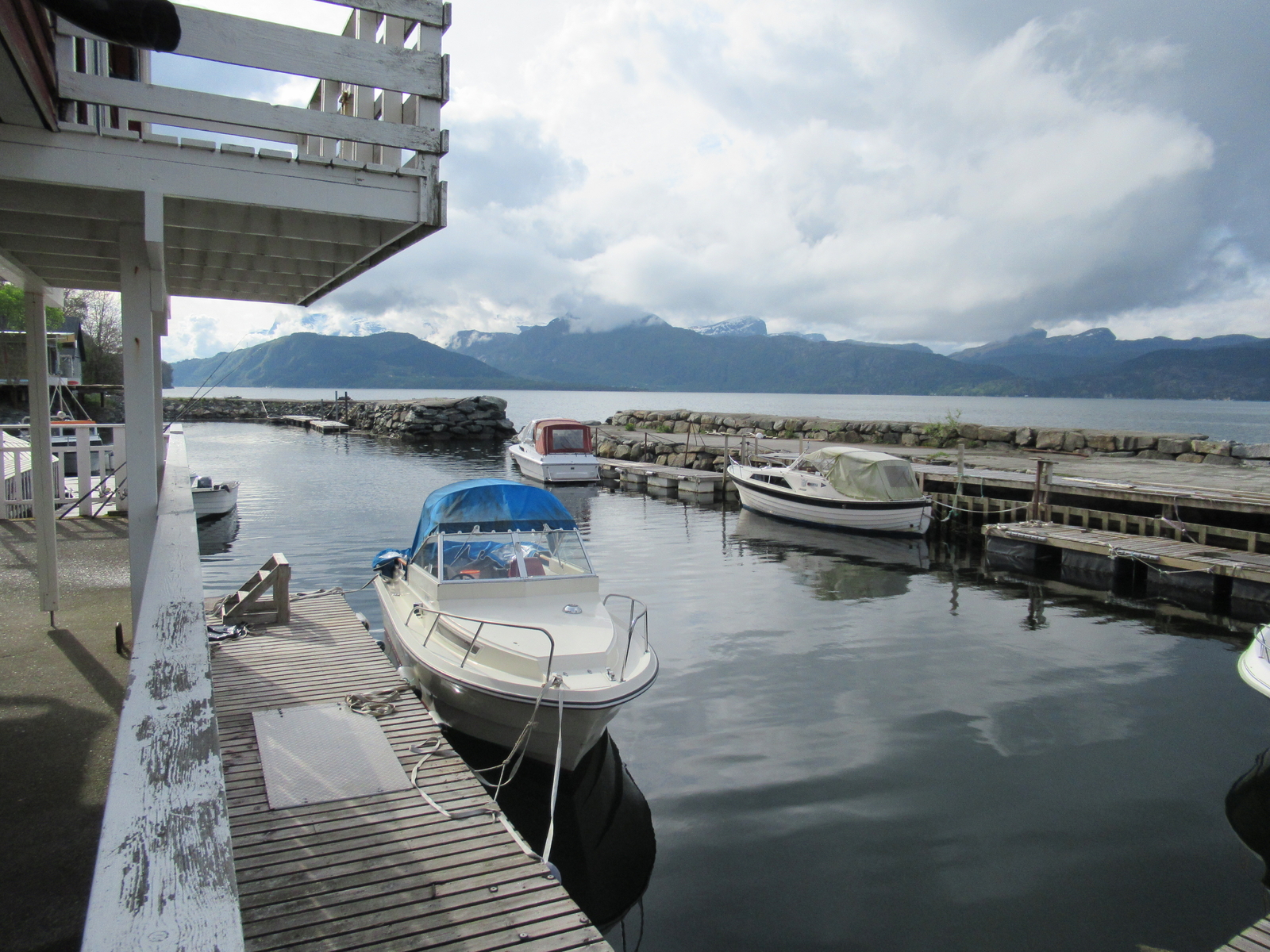 Ankunft bei Sölve am Fördefjord / Blick auf den Hafen und unser gemietetes Boot