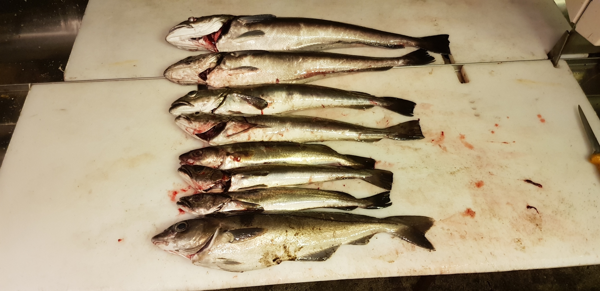Das Ergebnis am ersten Tag, nach vier Stunden angeln... sieben Seehechte und einen Schellfisch!