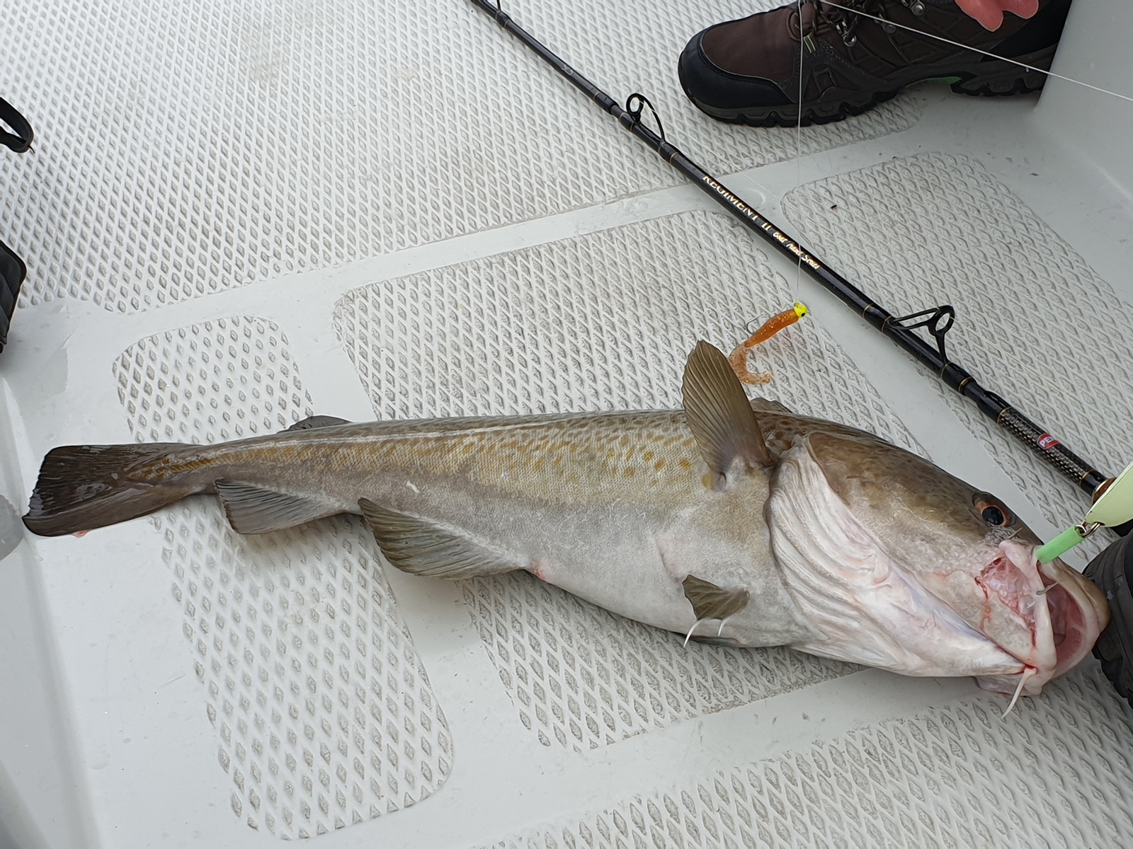 Wir waren noch kurz im Rosfjord gestern. Dort ist die Strömung sehr viel weniger. Ob es daran liegt, dass er größer und wesentlich tiefer ist? Keine Ahnung. Hier in den Schären und gerade auch rund um Farsund braucht man auch bei Null Wind noch dicke Gewichte. Hammer Strömungen! Meine Frau hatte den dicksten Fisch des Urlaubs dran. Er ging richtig ran, die Rute war krumm, die Bremse kreischte und sie gab alles den Fisch hochzuholen. Auf ca. halber Strecke (danke an Multicolour Schnur), hielt sie verdutzt inne und sagte "weg".... wir denken er ist vielleicht ausgeschlitzt, sie hat sehr schnell gekurbelt so wie es vorher abging, war es was größeres. Deutlich mehr Druck als bei dem 3 kg Dorsch!