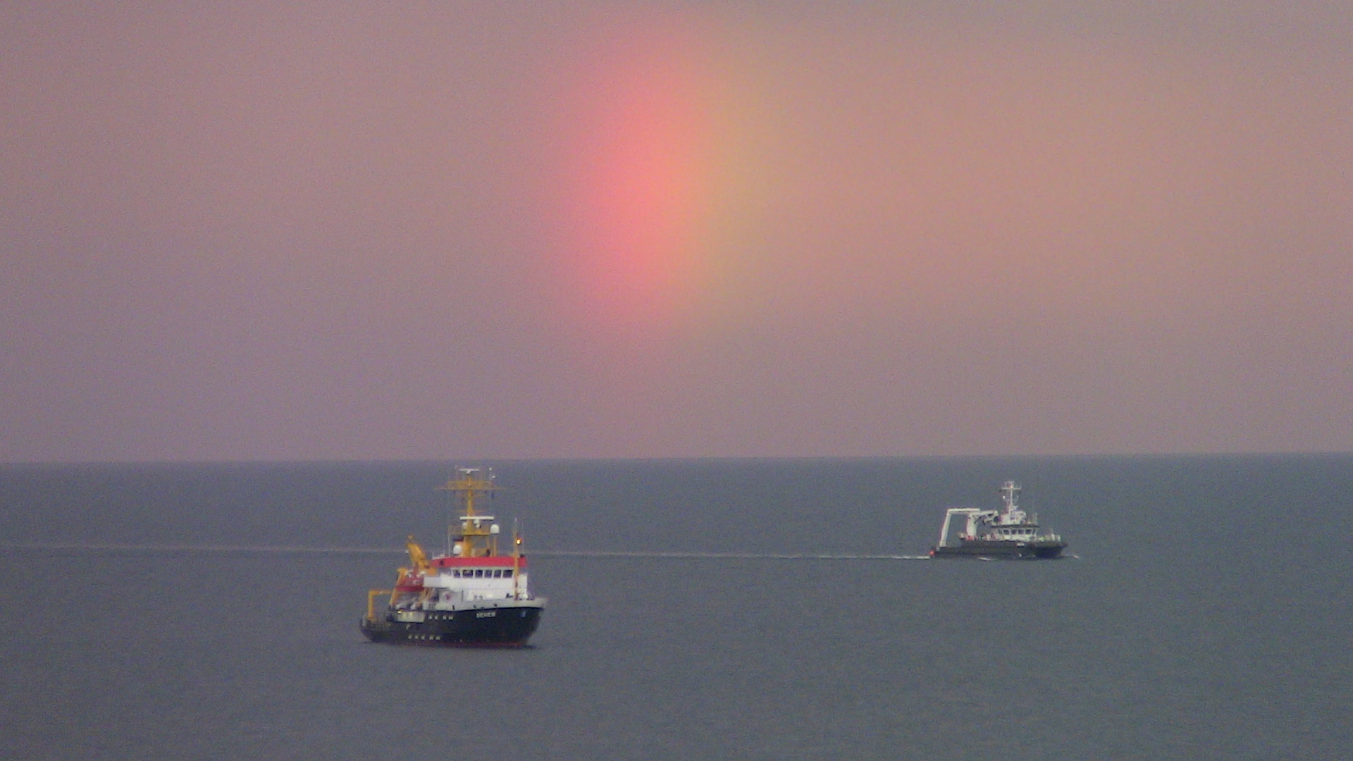 Sonnenuntergänge sind zwar sehr schön, aber mitunter sollte man zur gleichen Zeit auch malin die entgegengesetzte Richtung schauen. Das habe ich am 3. Juli 2017 getan und dabei von unserer Ferienwohnung in Sassnitz etwa 20 Minuten lang dieses Halo-Ereignis beobachten können.