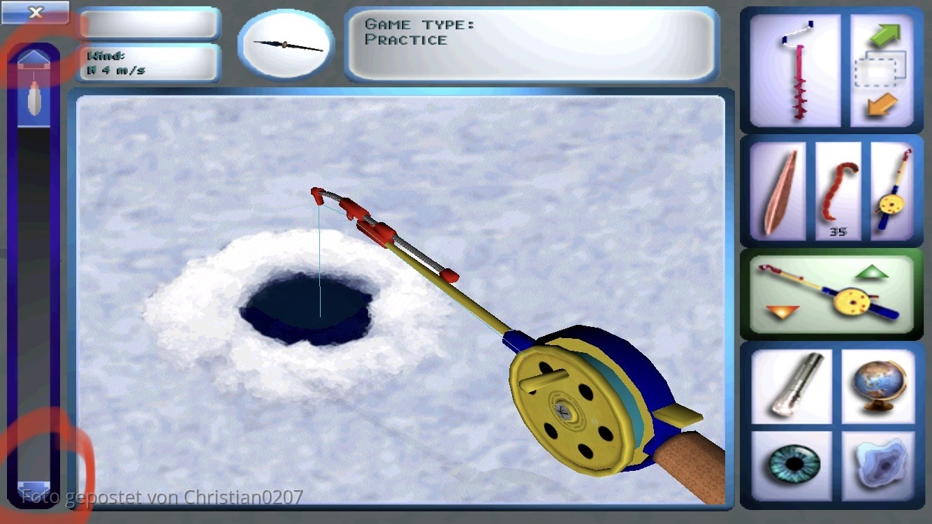 ich habe die Buttons gefunden, mit denen man den Köder hoch oder runterlassen kann. Einfach die Pfeiltasten drücken (hab ich rot markiert im ersten Bild) Wenn man auf die Angelrolle tippt, stoppt die Auf oder Abwärtsbewegung.